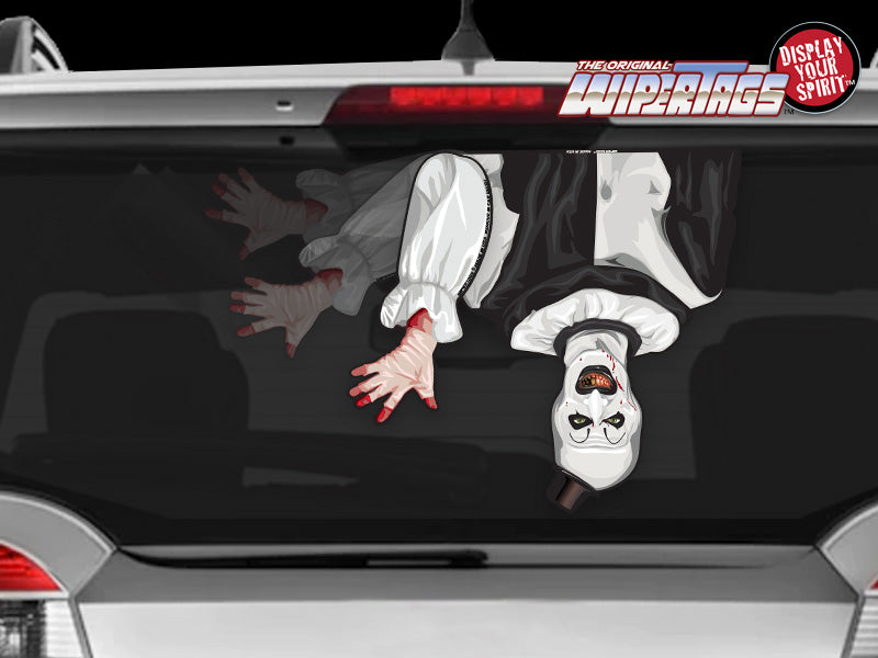 Clown haters won't want to ride behind you. This terrifying killer clown will keep drivers off your bumper.