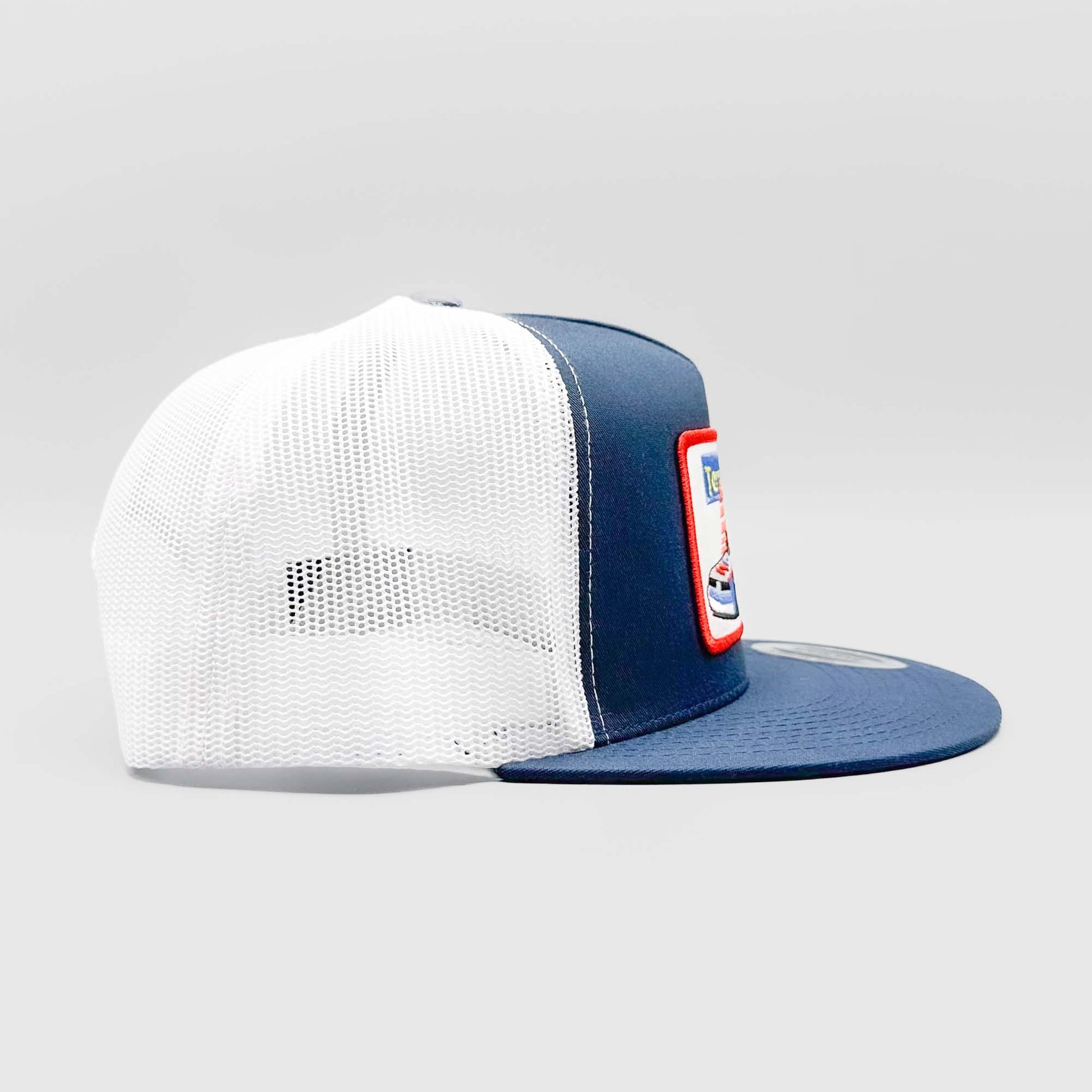- - Classic navy and white mesh trucker cap with premium, matching mesh panels