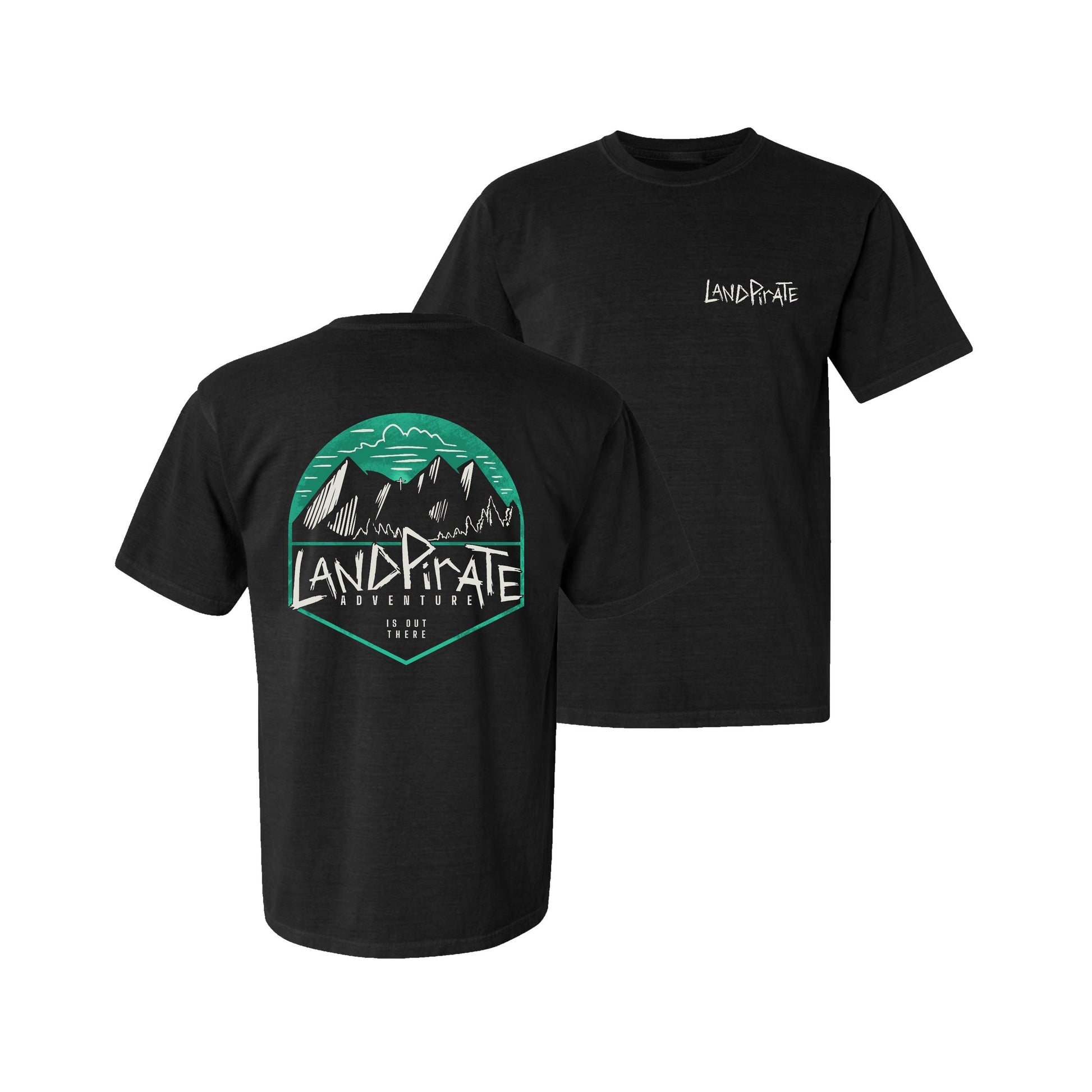 the "Adventurer" T-shirt, where rugged exploration meets wilderness chic. Emblazoned with the bold insignia "Land Pirate" set against a backdrop of majestic mountains, this tee exudes an air of adventure without sacrificing style. Crafted from premium fabric, it promises both comfort and durability, ensuring you're ready for any escapade the great outdoors throws your way. From hiking trails to urban expeditions, let the "Adventurer" tee be your go-to choice for both fashion and function.