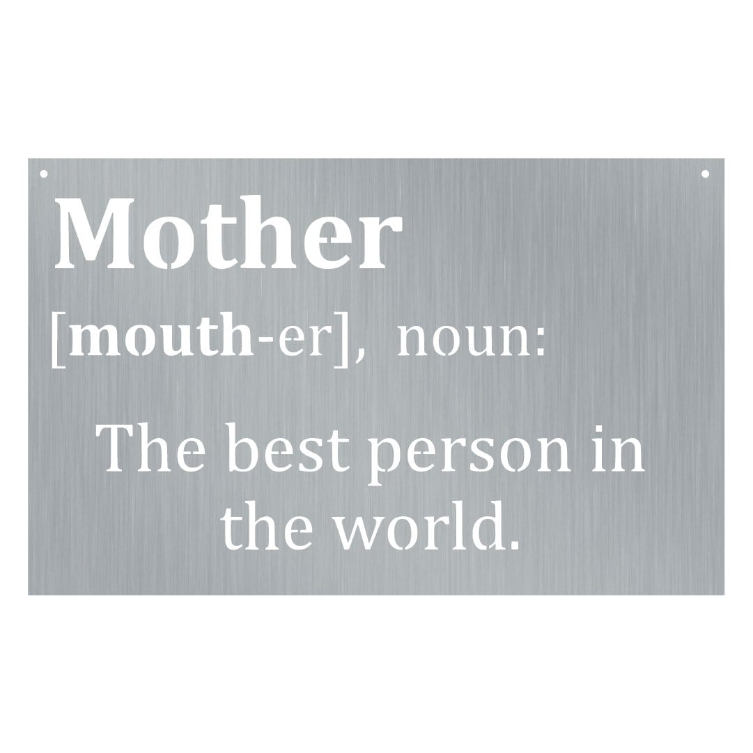 This metal art piece, made from sturdy 16 gauge steel with a powder-coated finish, features a rectangular design engraved with the heartfelt message: "Mother: The best person in the world." Its robust construction ensures durability, making it a thoughtful and lasting tribute to the special mom in your life. Perfect for adding a warm, meaningful touch to any room.