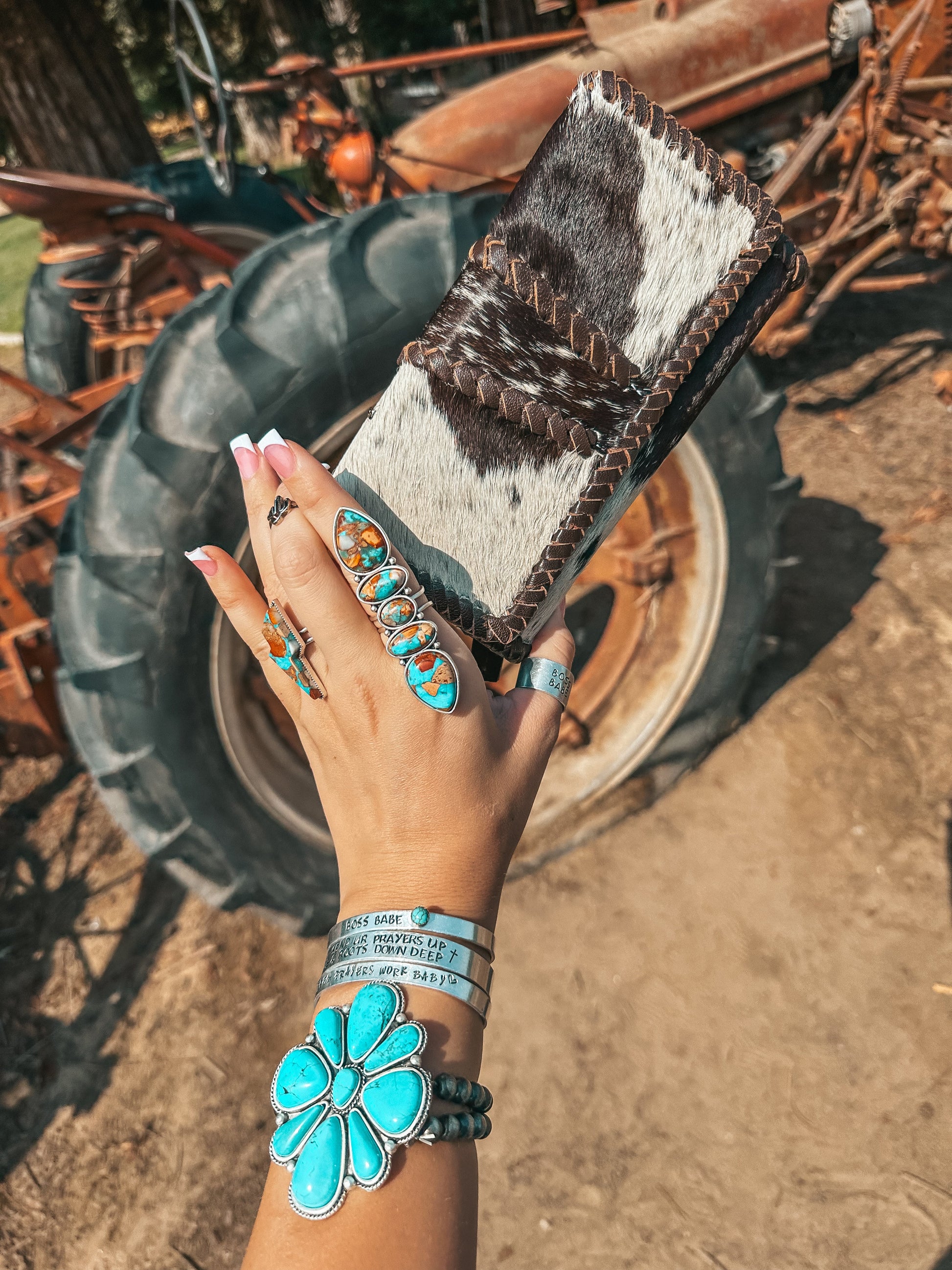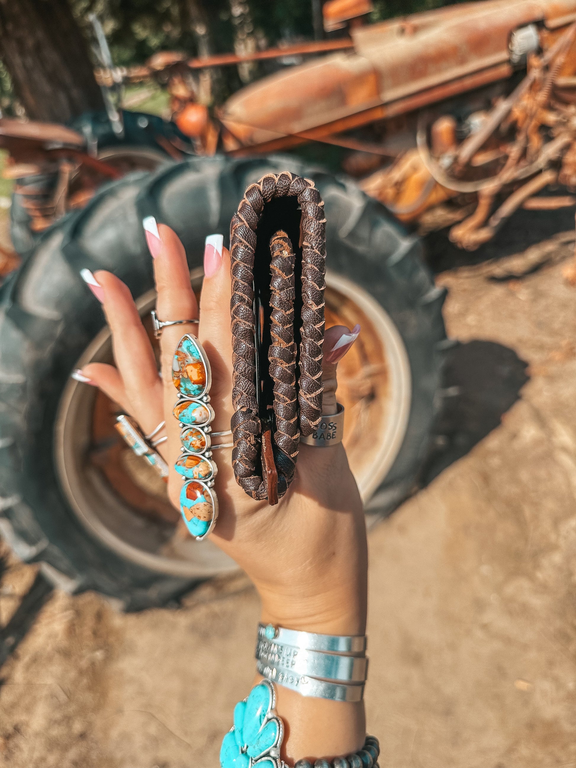 Sometimes a Hyde is just the vibe, and hand woven leather exemplifies the simplistic nature of this design. Introducing the Brown Full Ryder, a Haute Southern Hyde by Beth Marie Exclusive. Designed by the owner Beth Marie, this wallet was made for the everyday western fashion gal. She features a snap closure, a zipper for your loose change, and 6 slots for your cards. 1 of those being clear to hold your I.D. Card.