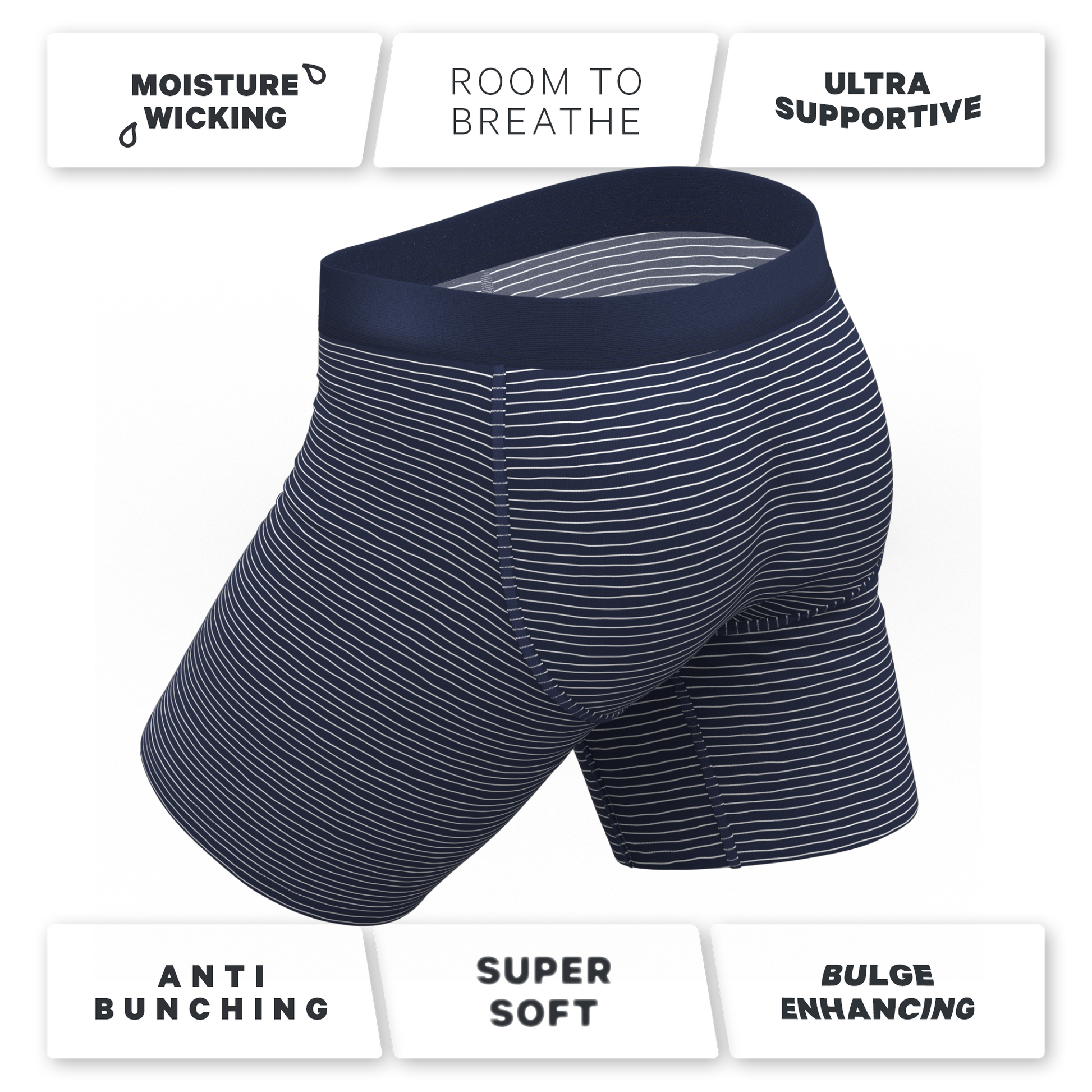 The Cheek Streak | White Stripe Long Leg Ball Hammock® Pouch Underwear With Fly