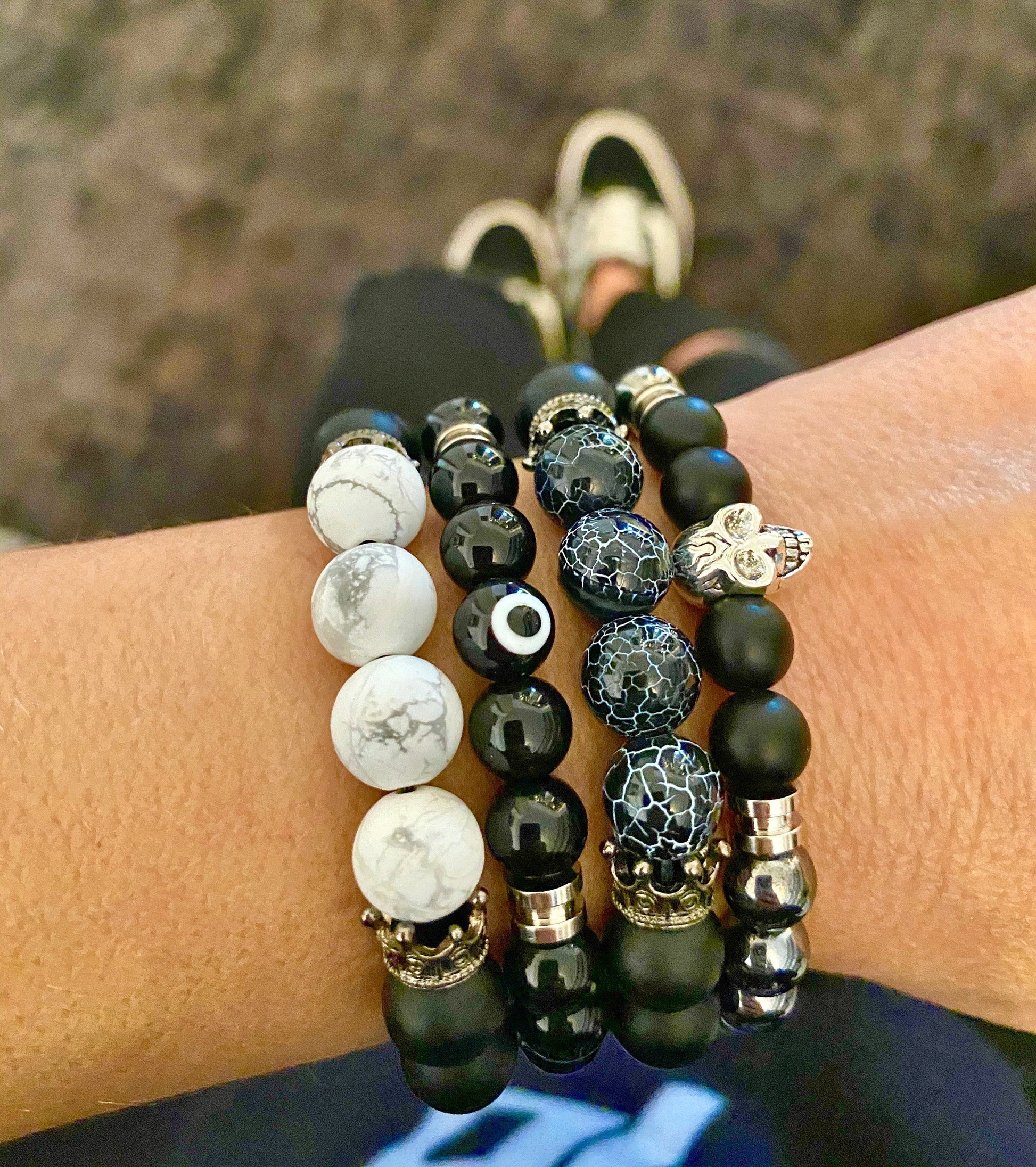 - Featuring High Quality 10mm Black Onyx & Matte Howlite Natural Stone Beads