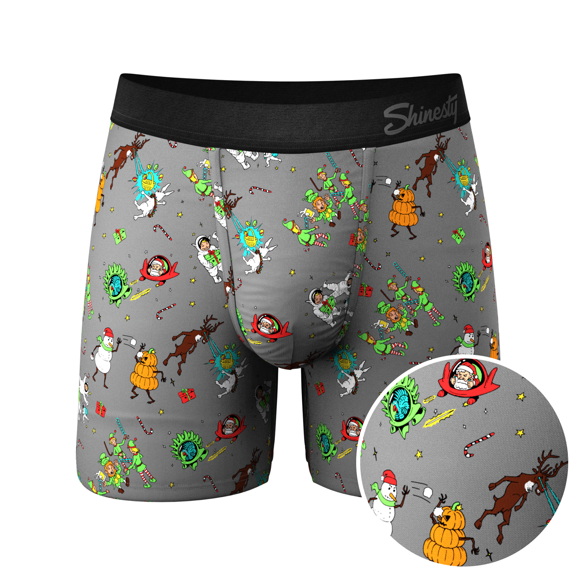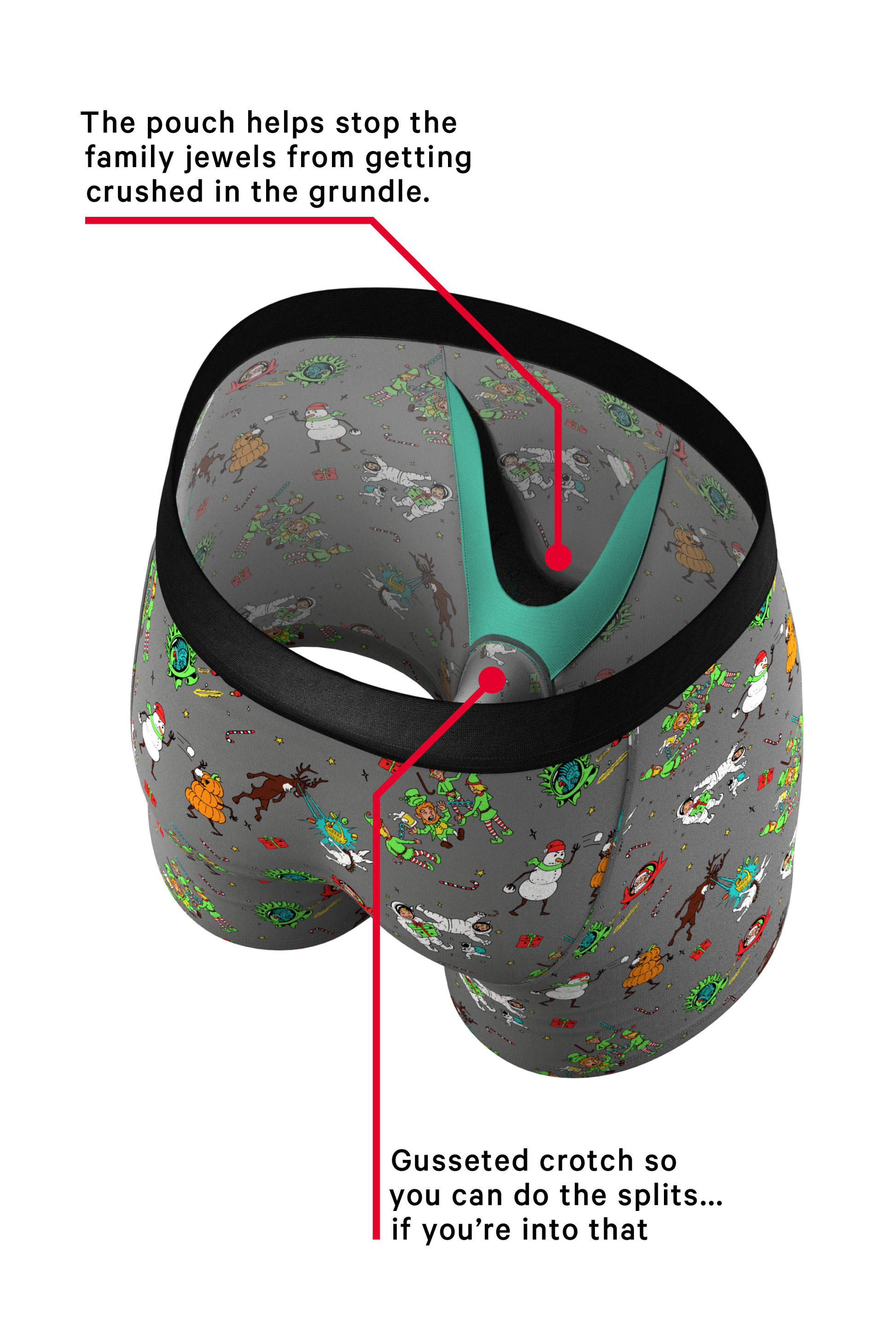 War is a terrible thing. So we feel it’s important to inform the masses of the conflict that ravages the North Pole each year as supply chains become more congested and Santa’s holiday routine becomes ever more stressful for all involved. Reindeer can shoot laser beams from their frickin eyes and elves do commit acts of violence against leprechauns even though they have more in common than they’d like to admit. Santa also traded in his boomer sleigh for a slick and modern attack craft courtesy of his friends at Area 51. The extra firepower will prove to be essential if he is to be successful against the Turkey Confederation. The war for the title of best gift giver is almost as fierce as the Holiday Wars, but victory is guaranteed when you snag these holiday war Ball Hammock® Pouch Underwear.