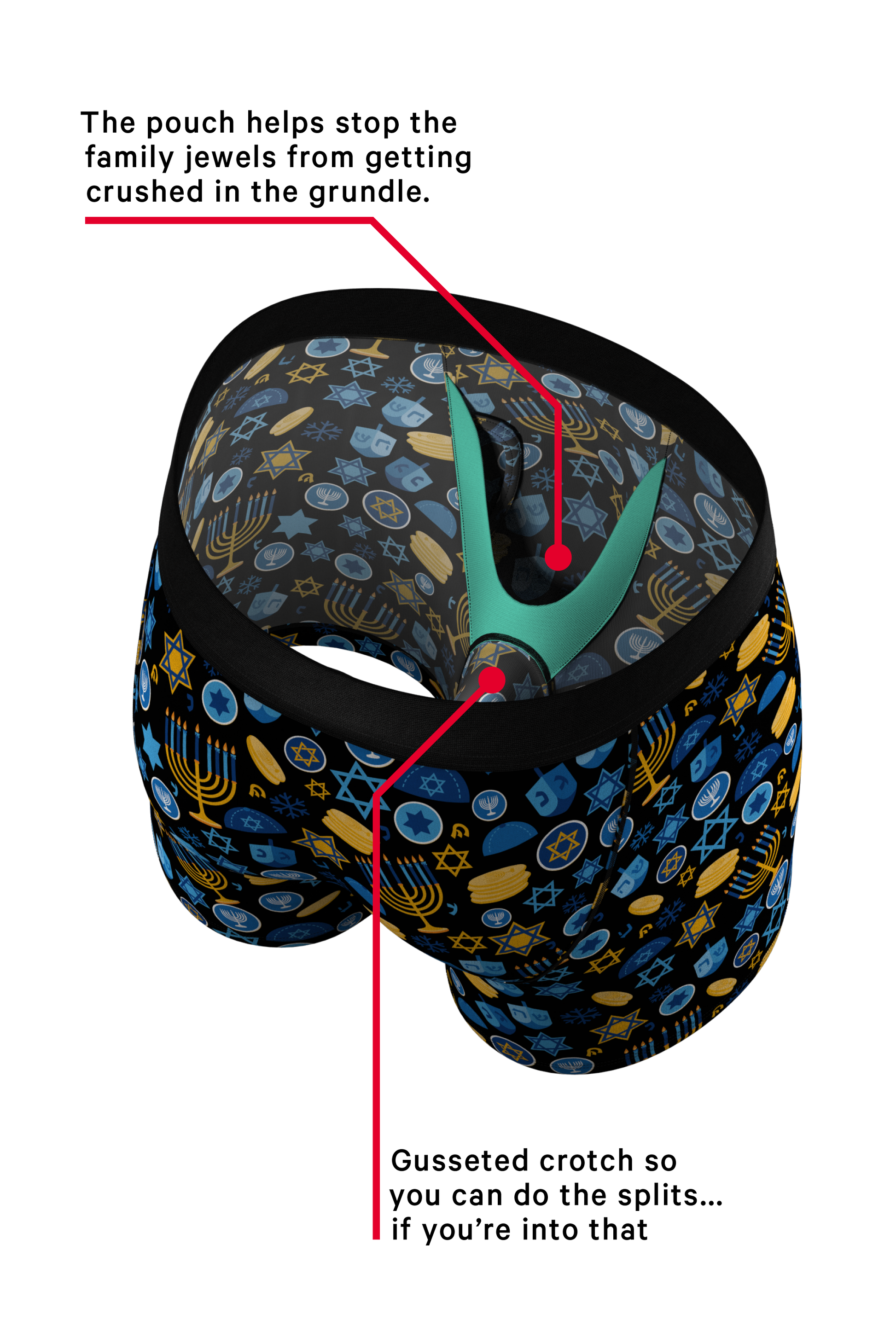 Forget the not-so-silent nights. You've got at least 8 crazy nights coming your way when you wear this pair of Hanukkah themed Ball Hammock® pouch underwear with fly.
