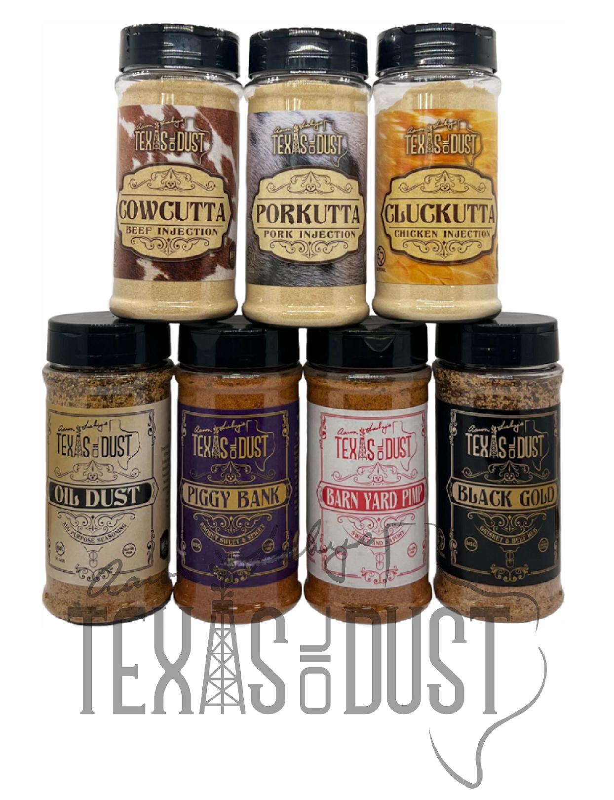 Here’s the bundle with all of our Award winning products that we use each and every weekend. These rubs and Injections are seriously good and is what gave us the chance to become the IBCA #2 Team of the Year for 2019. This is the perfect combo pack for your weekend warrior, backyard Pitmaster or best friend in the kitchen. The rubs are perfect for the grilled veggie plates, French fries and burgers to your favorite popcorn for movie night. The Injections aren’t just for meats, but work awesome for soup bases and stews, chili sauces and your favorite chicken noodle soup recipe. We have many uses for everything in this “Grand Champion” pack