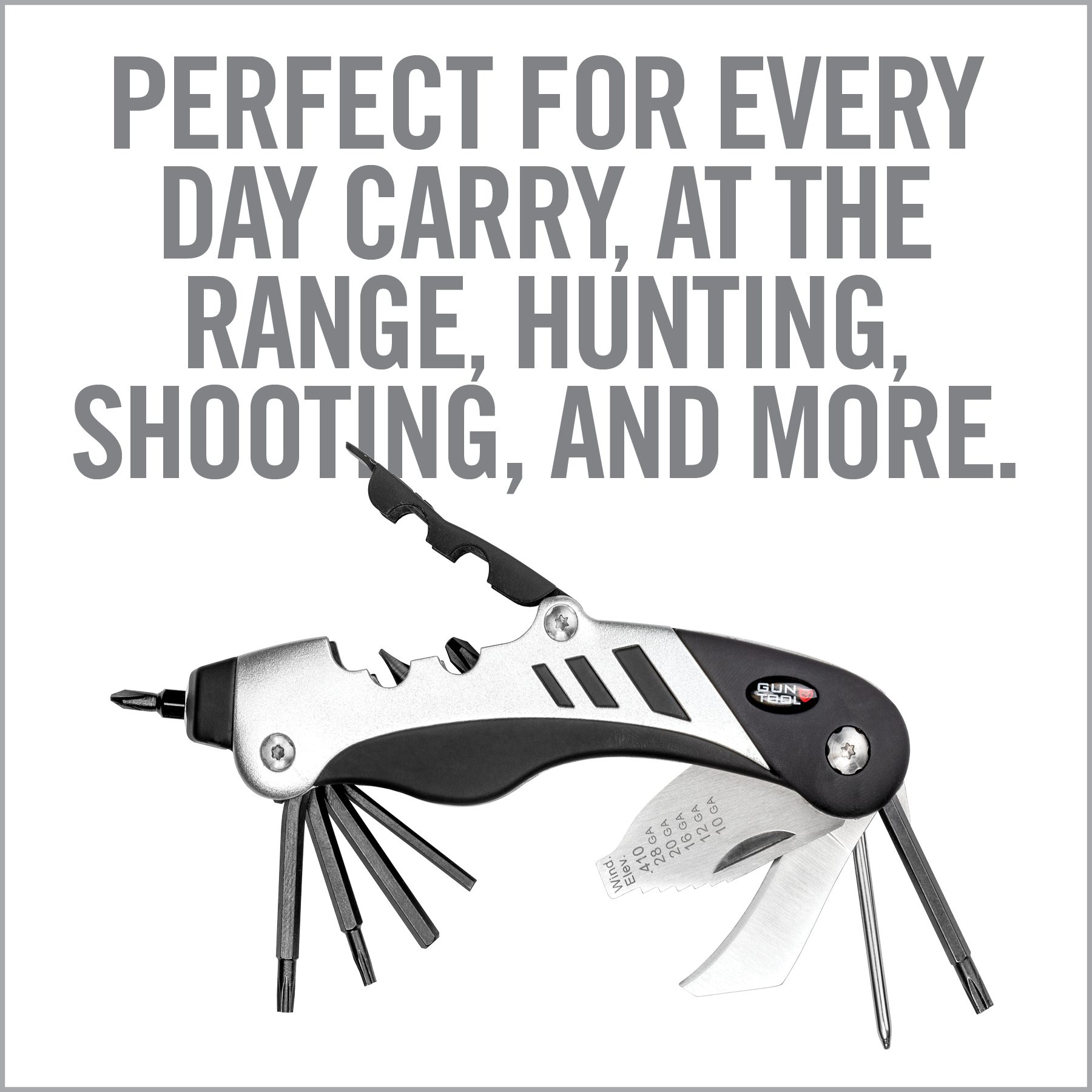 The Gun Tool is the original, shooter’s multi-tool. This patented design features 18 of the most frequently used firearm tools. Its ergonomic body, weighing in at only 7 ounces, is designed to give you a perfect grip, proper leverage and ideal torque. The Gun Tool gives you a lot of capability whether you’re in the field, on the range or at your workbench.