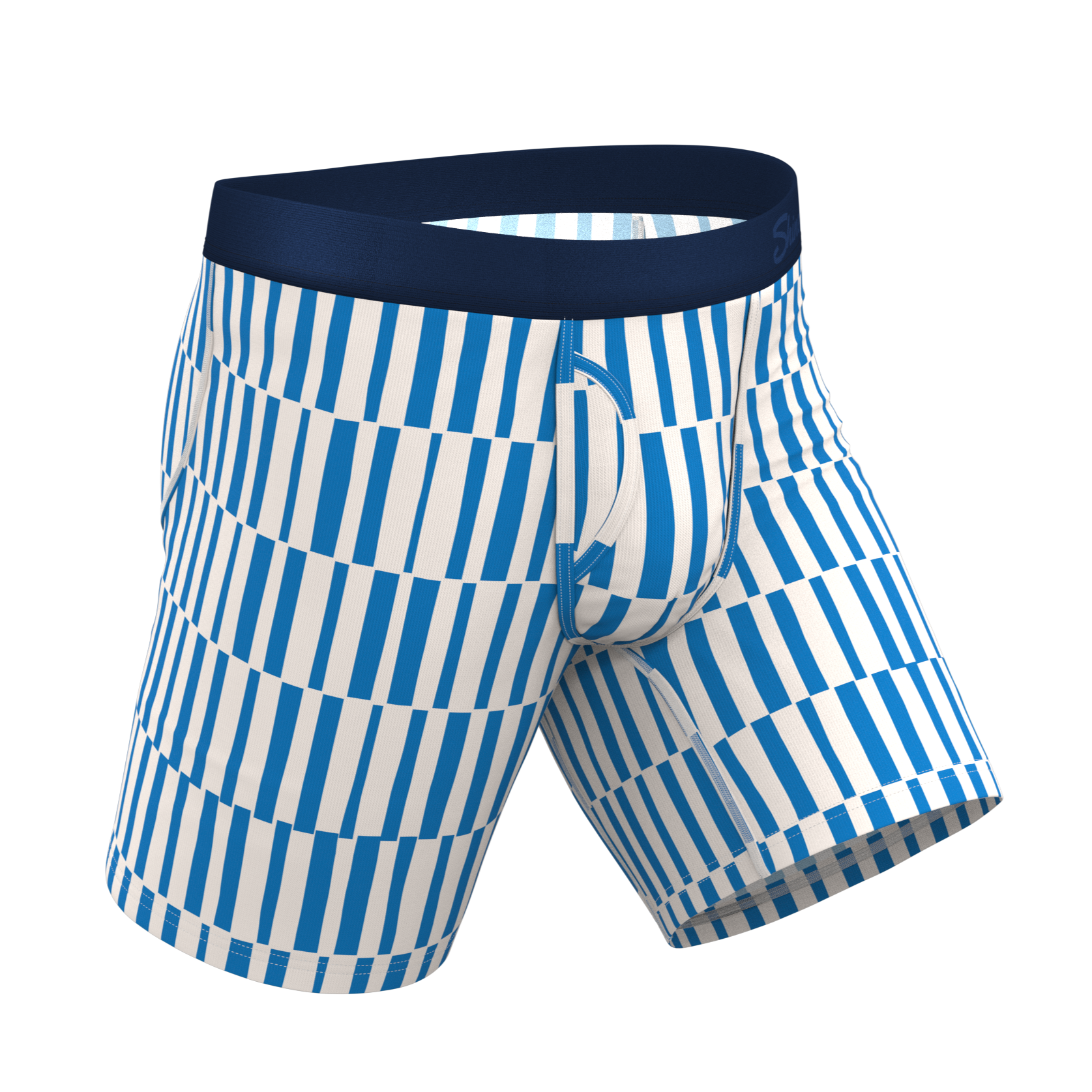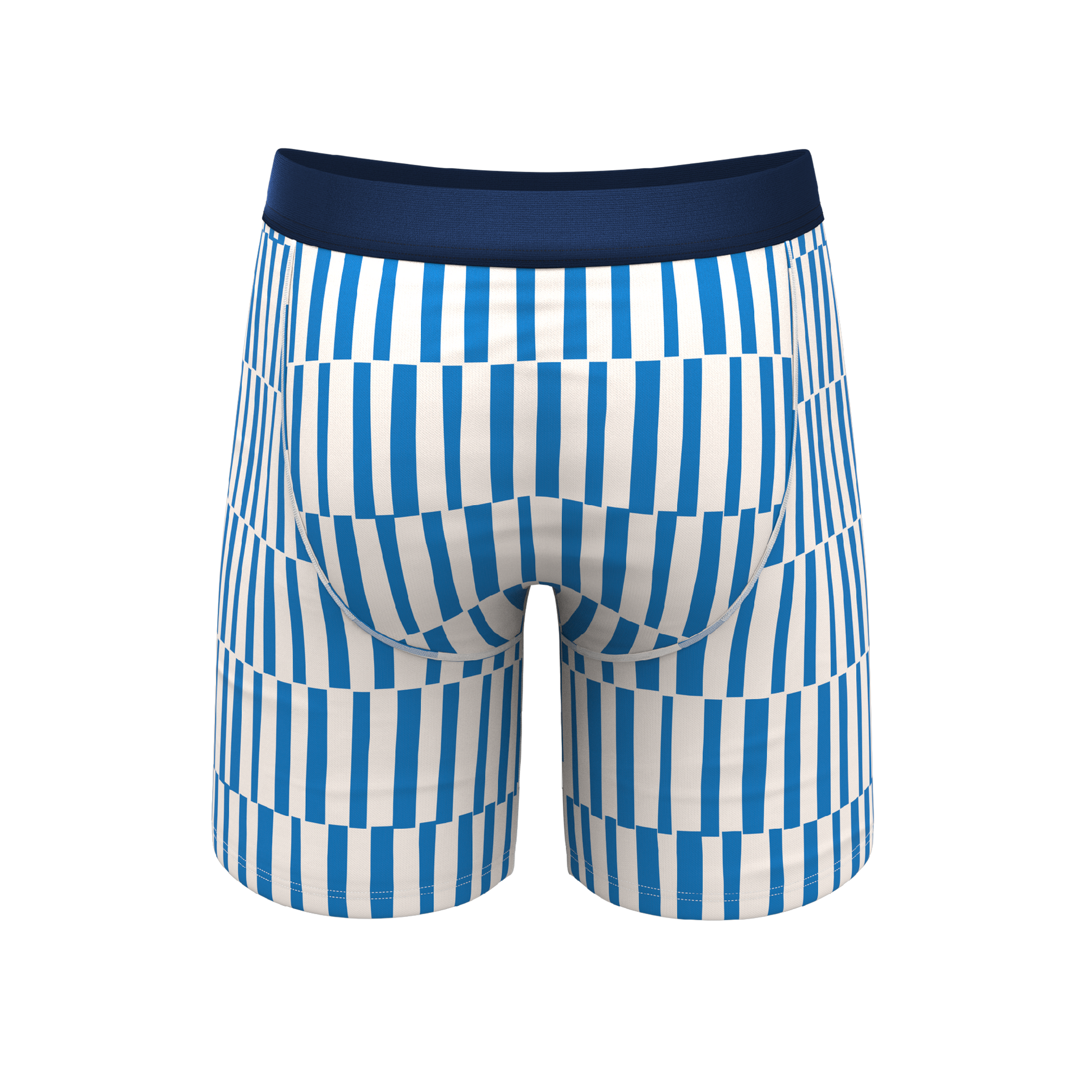 The Hamptons | Blue Mosaic Stripe Long Leg Ball Hammock® Pouch Underwear With Fly
