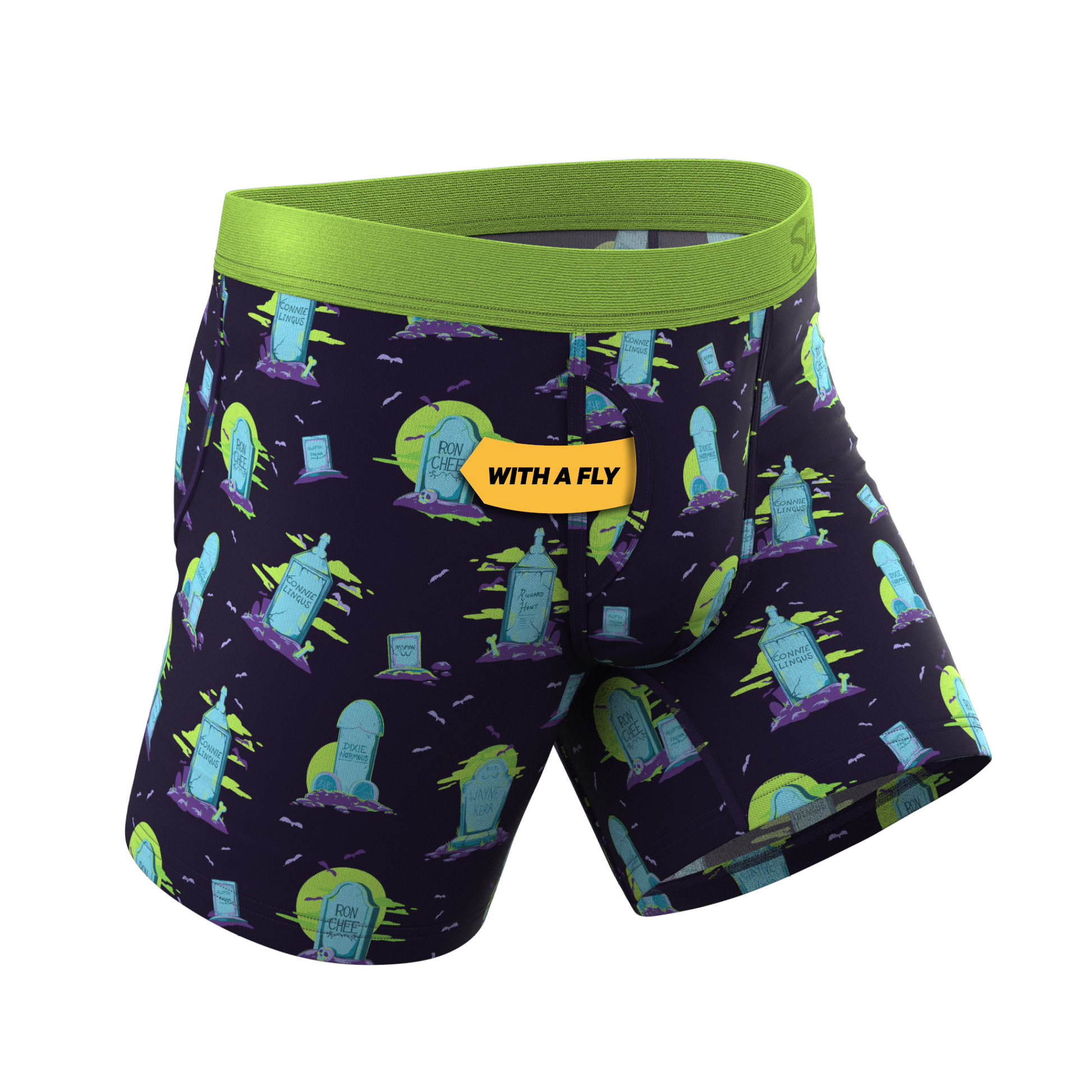 Take a closer look and you'll discover why we called this pair of Ball Hammock® Pouch Underwear with fly a HEADstone and not a TOMBstone. RIP Wayne Kerr, Ron Chee and Connie Lingus. You'll live in our dirty thoughts forever.