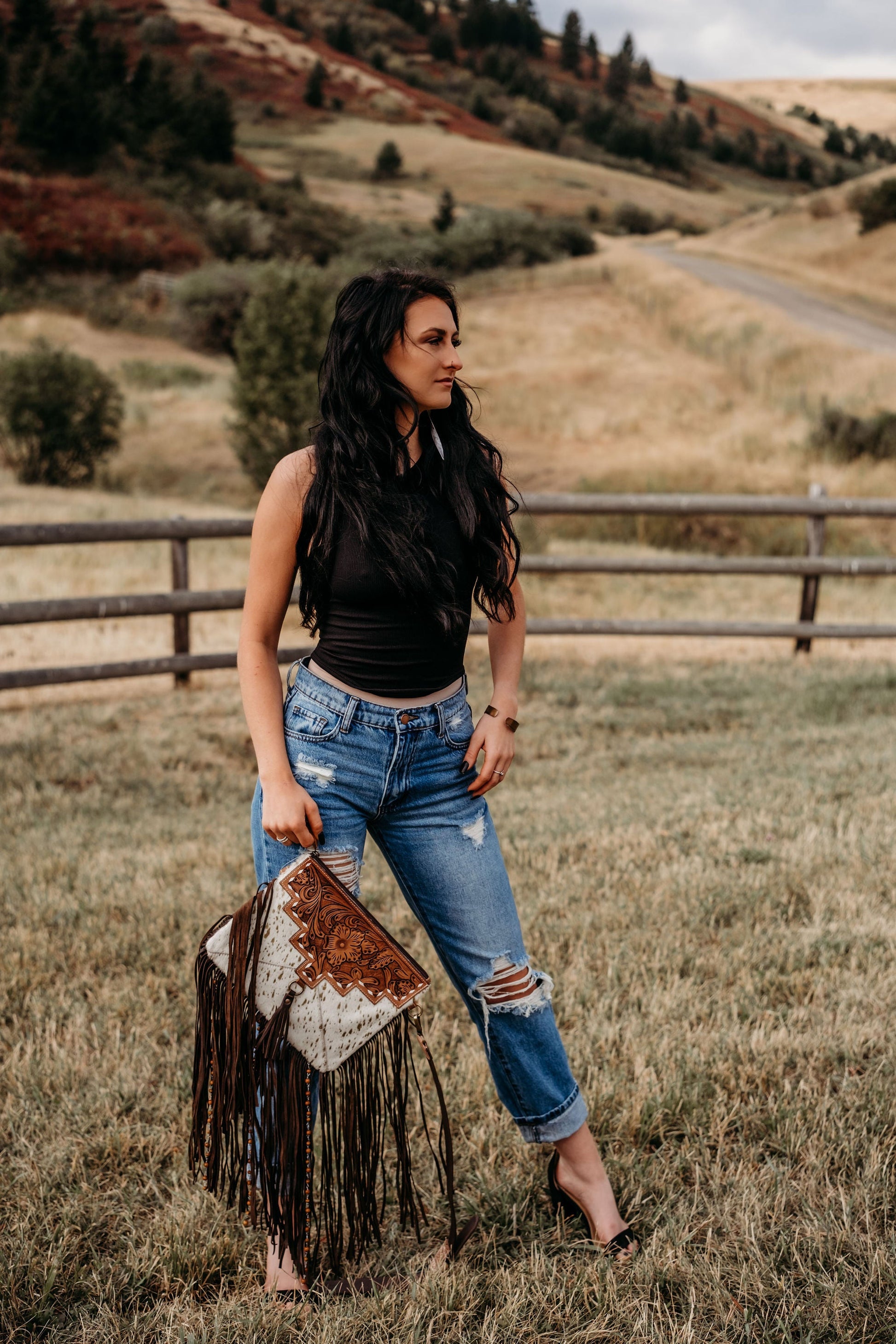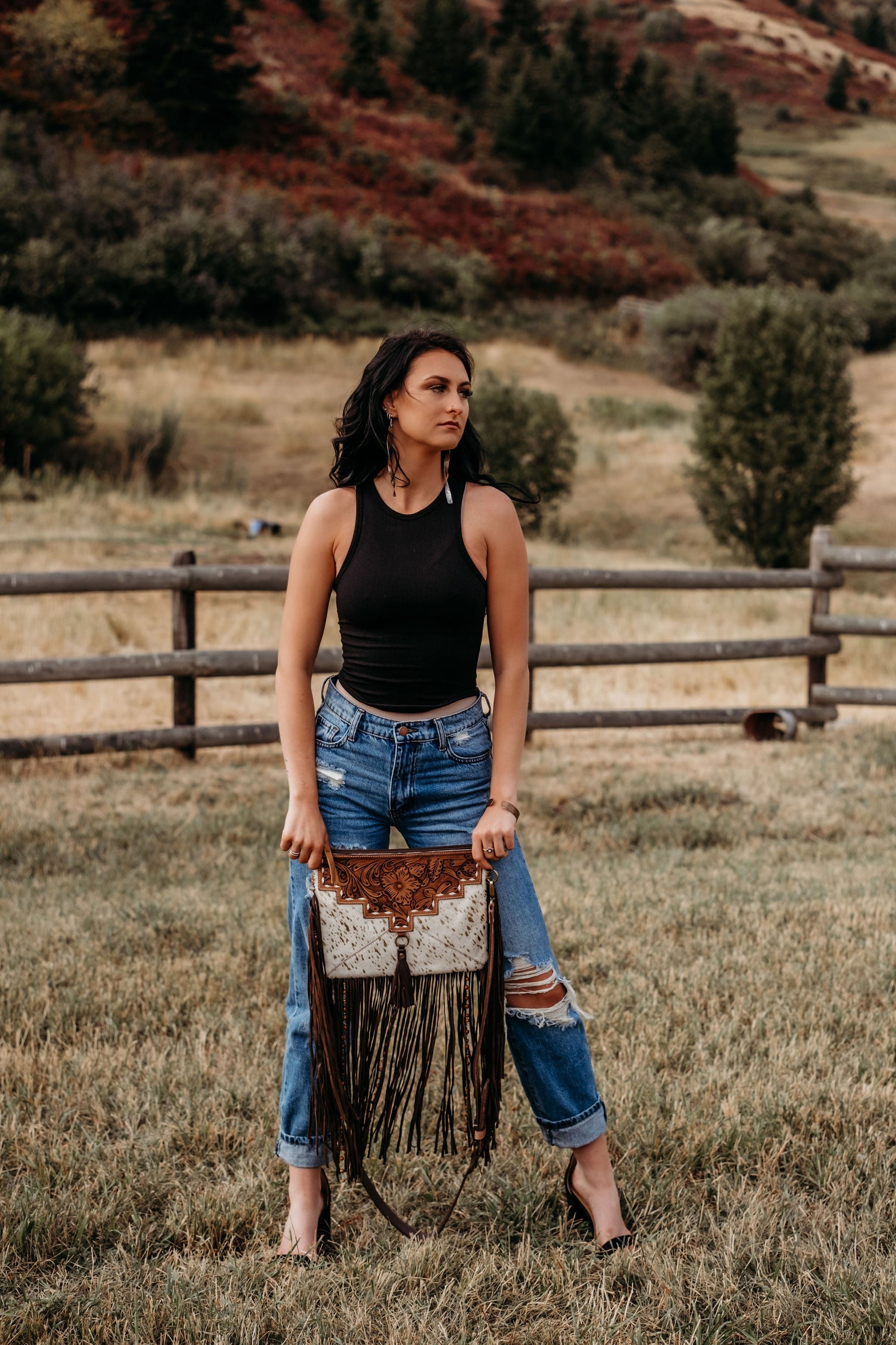 I designed this purse to be used for every moment in life! Whether you are in your everyday outfit, or booking your concert tickets to see your favorite artist, you can be sure that this purse will bring your aesthetic together beautifully. This purse boasts a tooled adjustable and removable strap, and an interior zipper pocket while the purse closes via zipper at the top. Please note every Purse will be one of a kind as each purses made with new unique cowhide pieces.