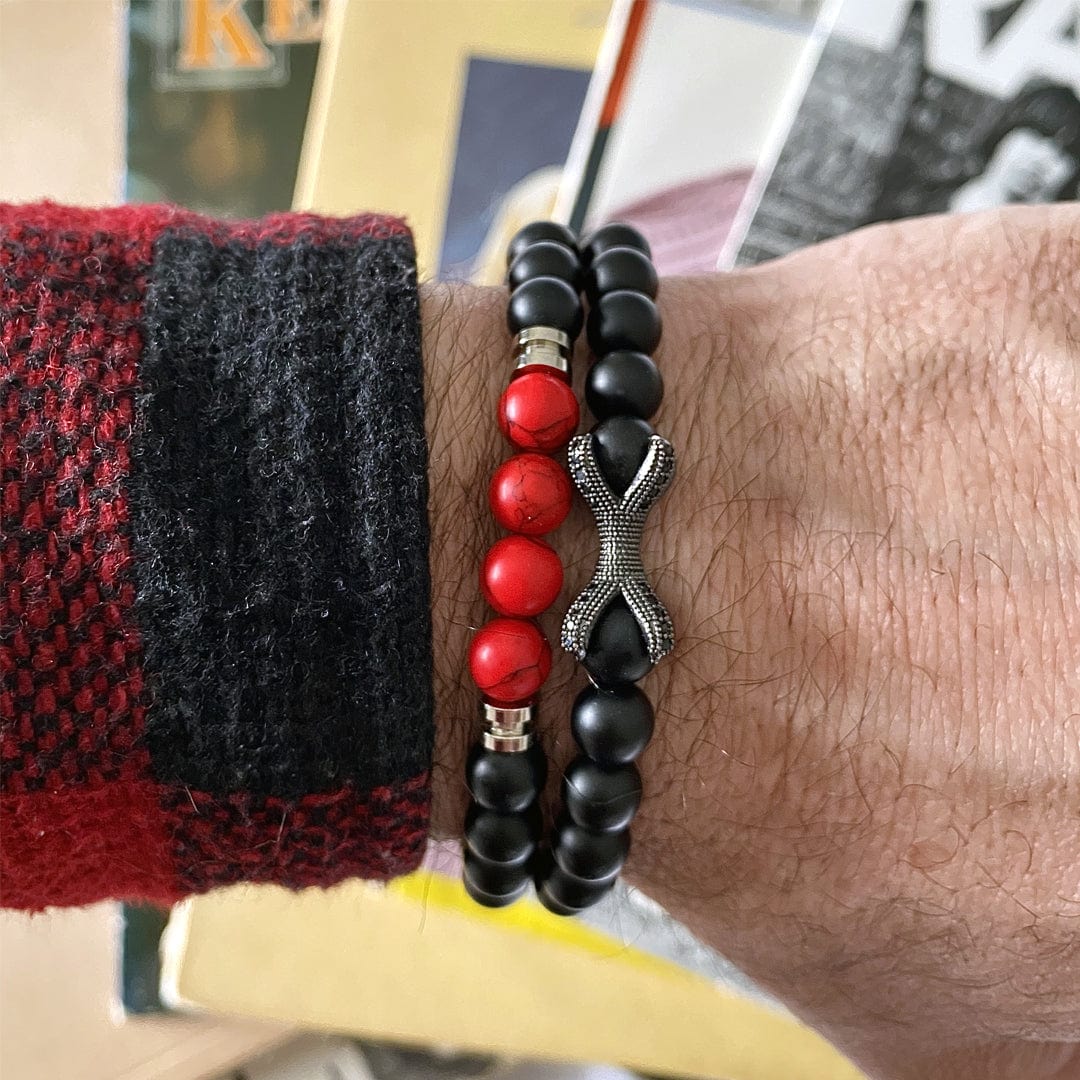 - Featuring High Quality 8mm Black Onyx & Red Turquoise Stone Beads