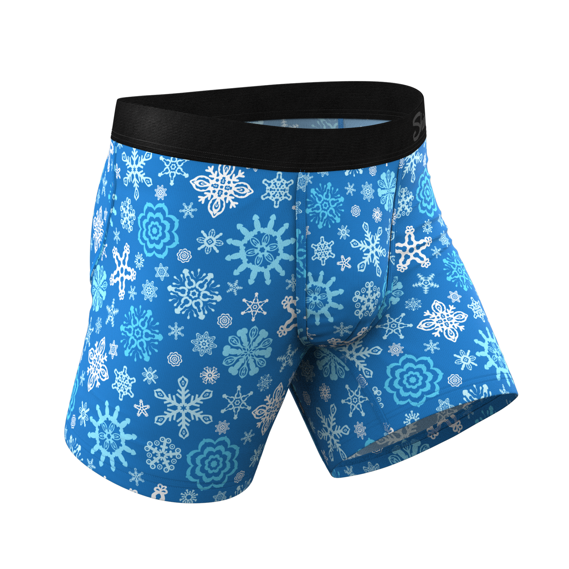 WARNING: The snowflakes here are more phallic than they appear. But that's not all. Expose these knob-flakes to bright light, then bring them into a dark room and watch the snowflakes on this pair of Ball Hammock® underwear glow.