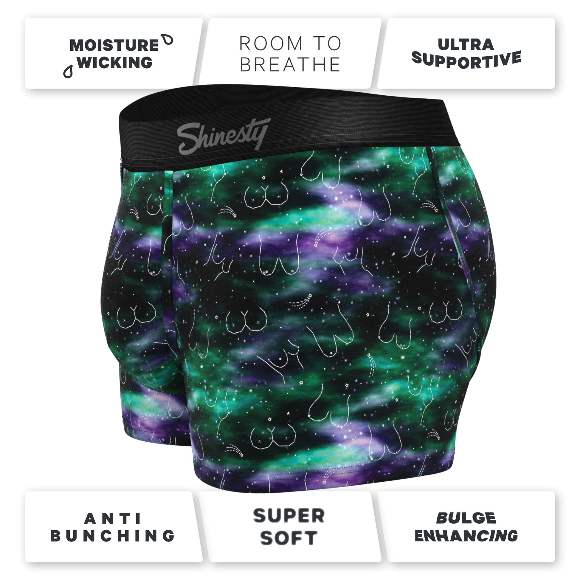 Now those are some celestial bodies I’d like to visit. The constellations on these Ball Hammock® pouch trunks will definitely have Orion dropping his belt to release a supernova.
