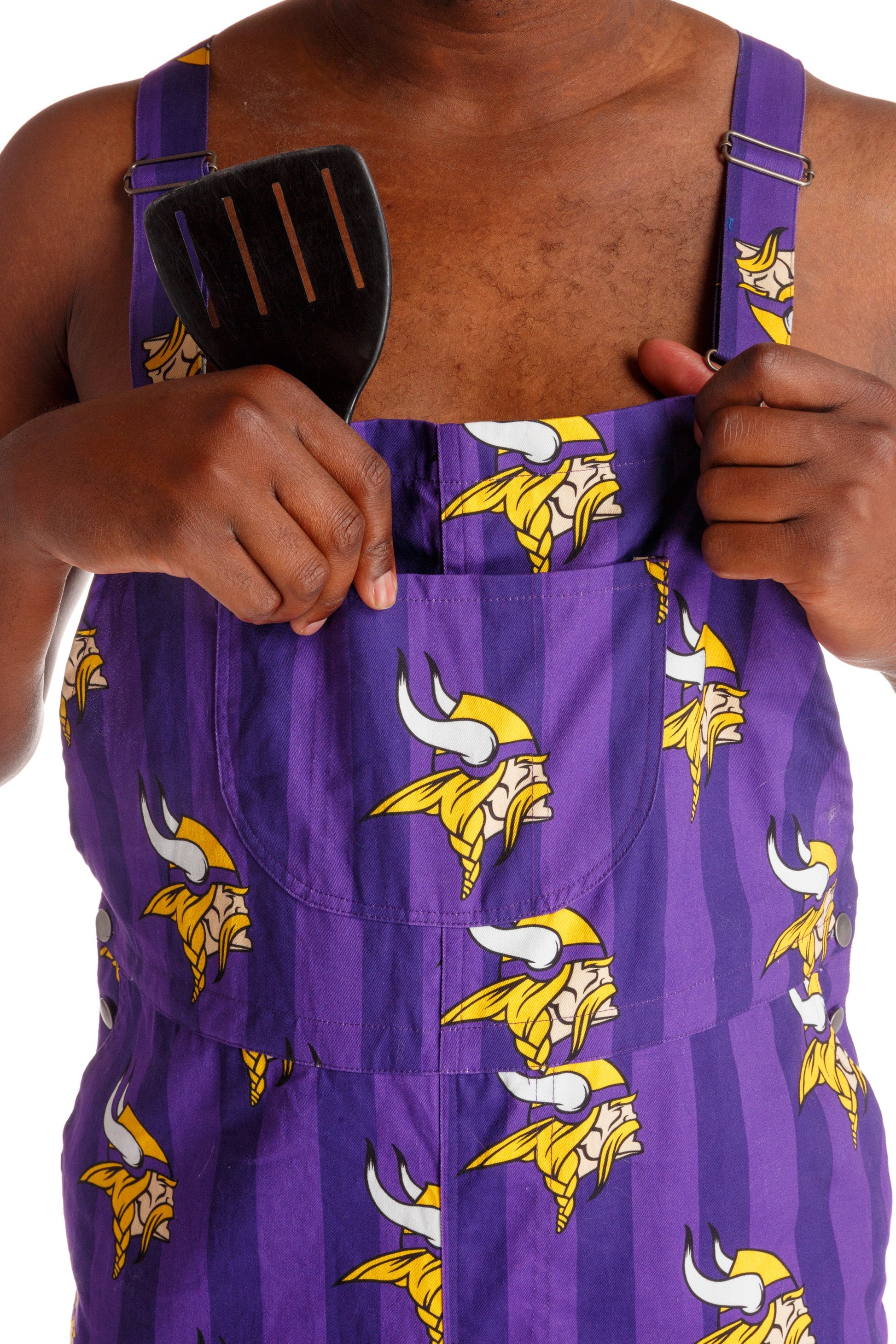 Minnesota Vikings overalls. Legend has it that it was the Vikings who invented overalls. Don’t hold us to that because it’s probably wildly inaccurate but these Minnesota Vikings coveralls carry the gravitas of a garment destined for winter football.