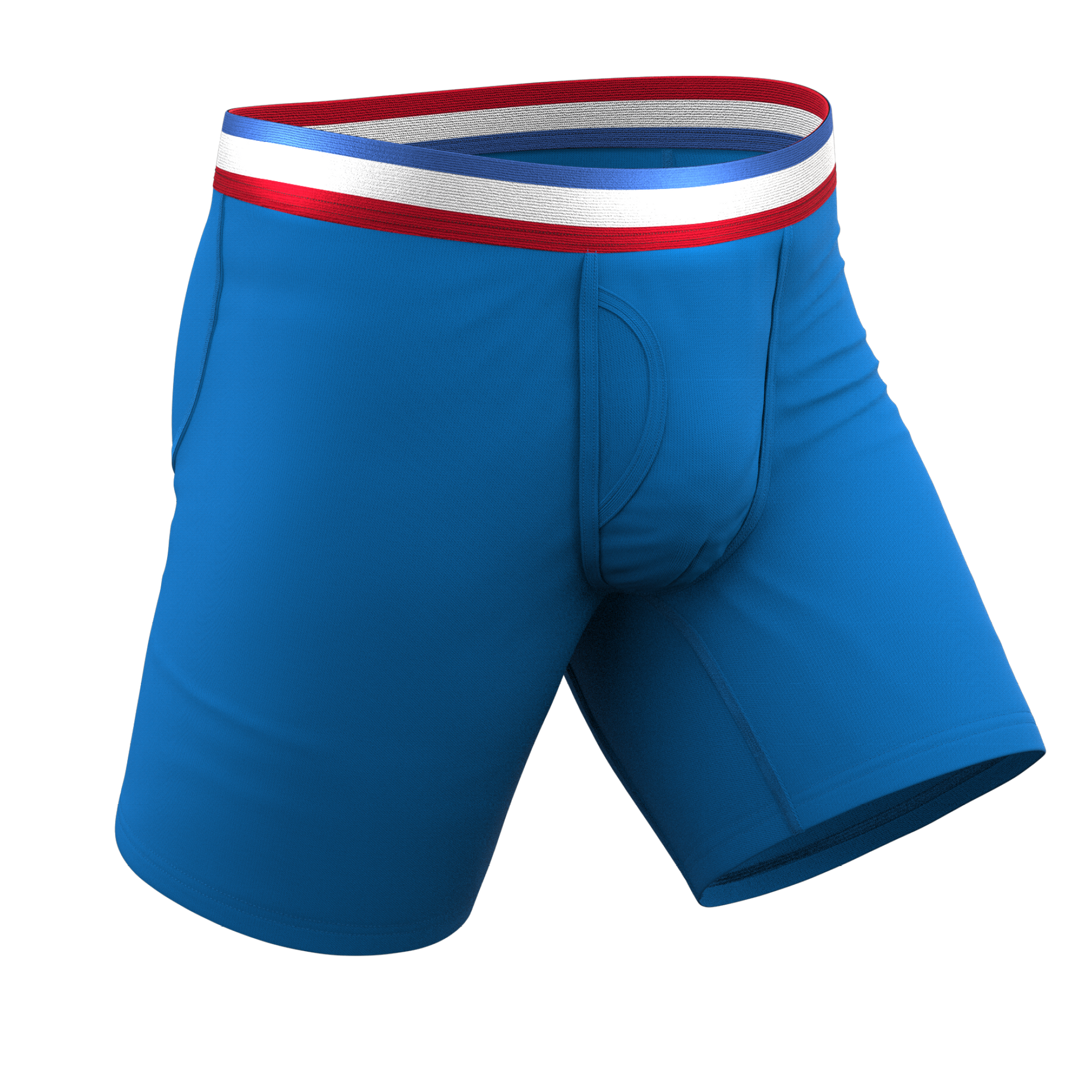 The Morning Glory | Blue with USA Waistband Long Leg Ball Hammock® Pouch Underwear With Fly