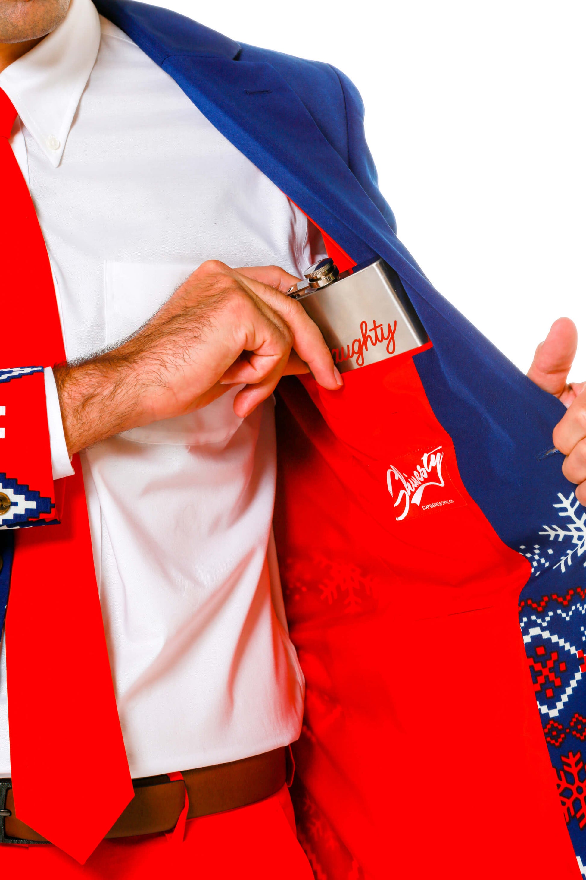 The Navy Nordic Christmas Suit - handcrafted in artisanal macro batches for your Christmas party pleasures. Taking only the finest ugly Christmas sweater patterns and putting them on this high-quality red and navy sweater suit. It’s sensual, it’s sophisticated, and you can’t find it at J. Crew. You can even have matching family Christmas outfits with this print. Be classy, not tacky this Christmas and wear a Christmas suit.