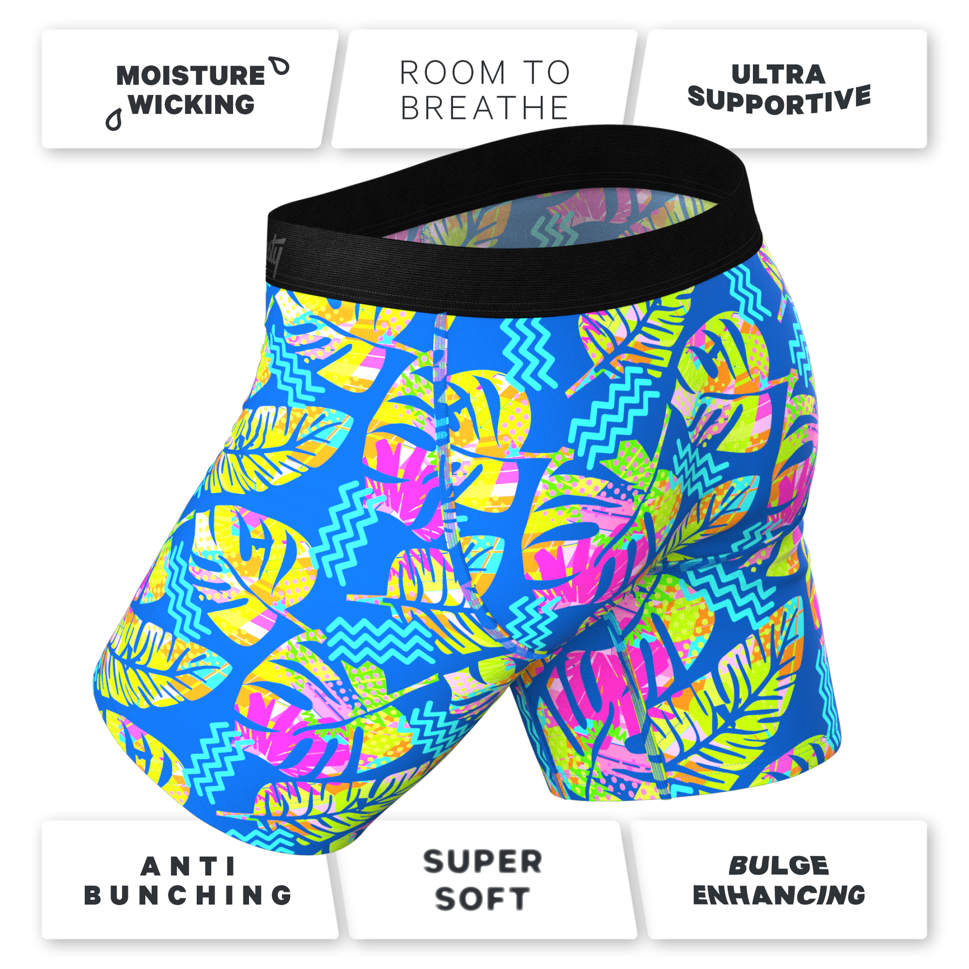 The Oahu Rendezvous | Tropical Leaves Long Leg Ball Hammock® Pouch Underwear With Fly