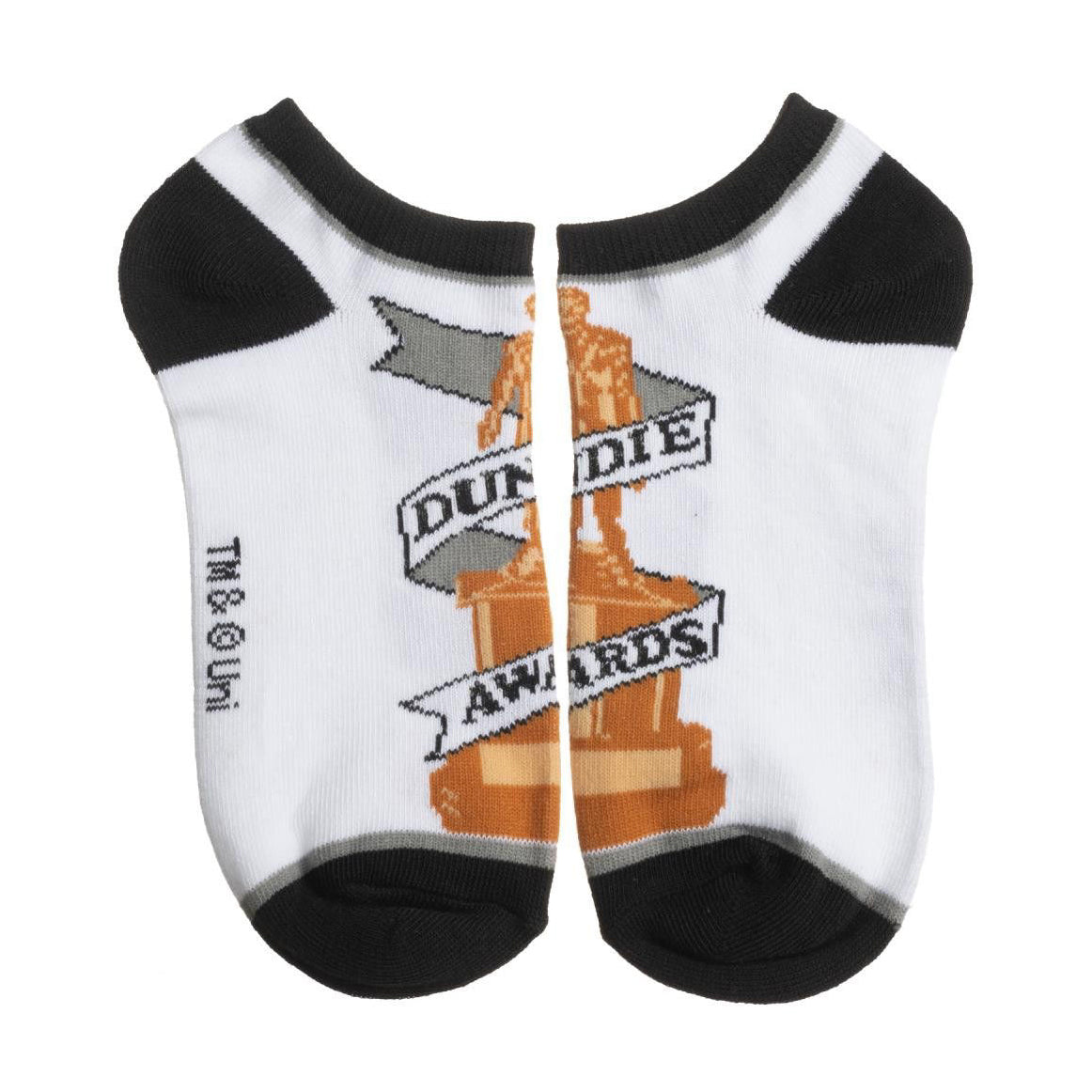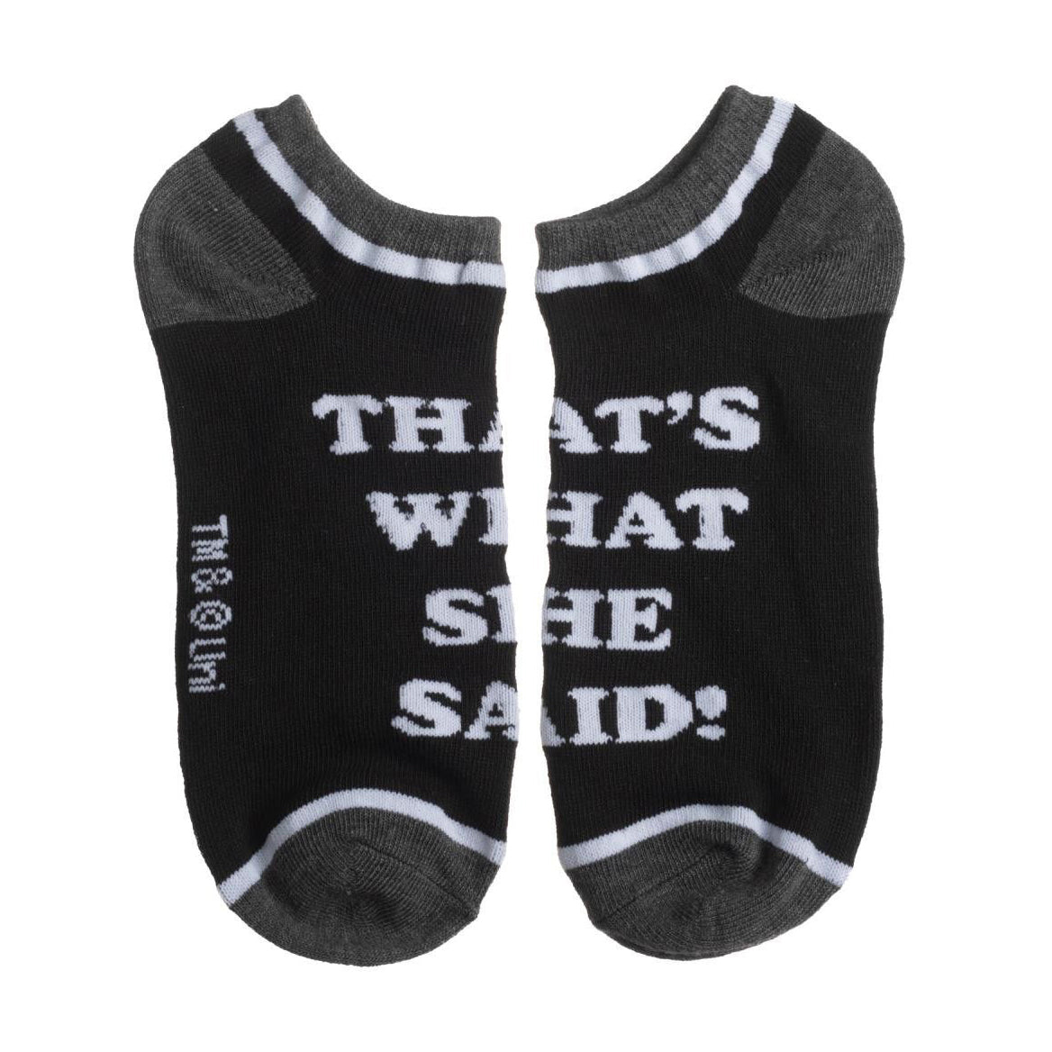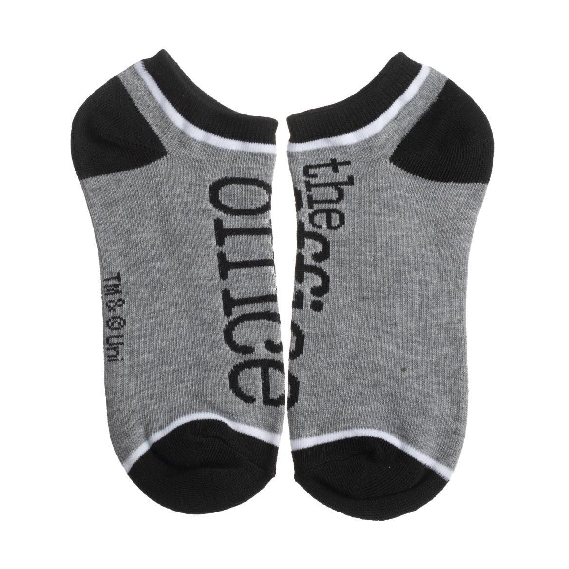 Calling all Office fans! Get ready to put your feet up and cozy up in this 5-pack of ankle socks featuring iconic designs and phrases from the beloved TV show. Wear Jim's famous "Dundies" or rock the office logo in style. But don't wait too long, just like Michael Scott said, "sometimes I'll start a sentence and I don't even know where it's going. I just hope I find it along the way," and we hope you find these socks in your online shopping cart!
