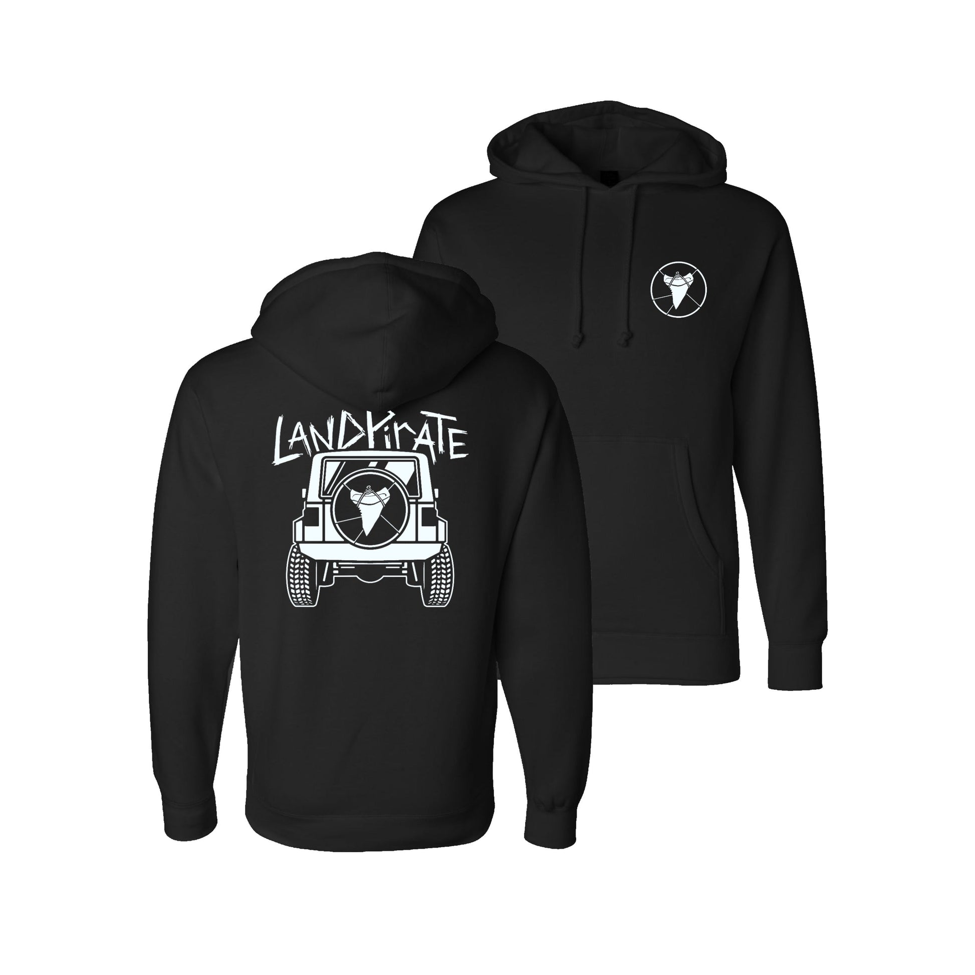 The Outback Hoodie exudes adventure and rugged style with its depiction of a Jeep Wrangler adorned with a striking shark tooth on the tire cover, symbolizing resilience and exploration.