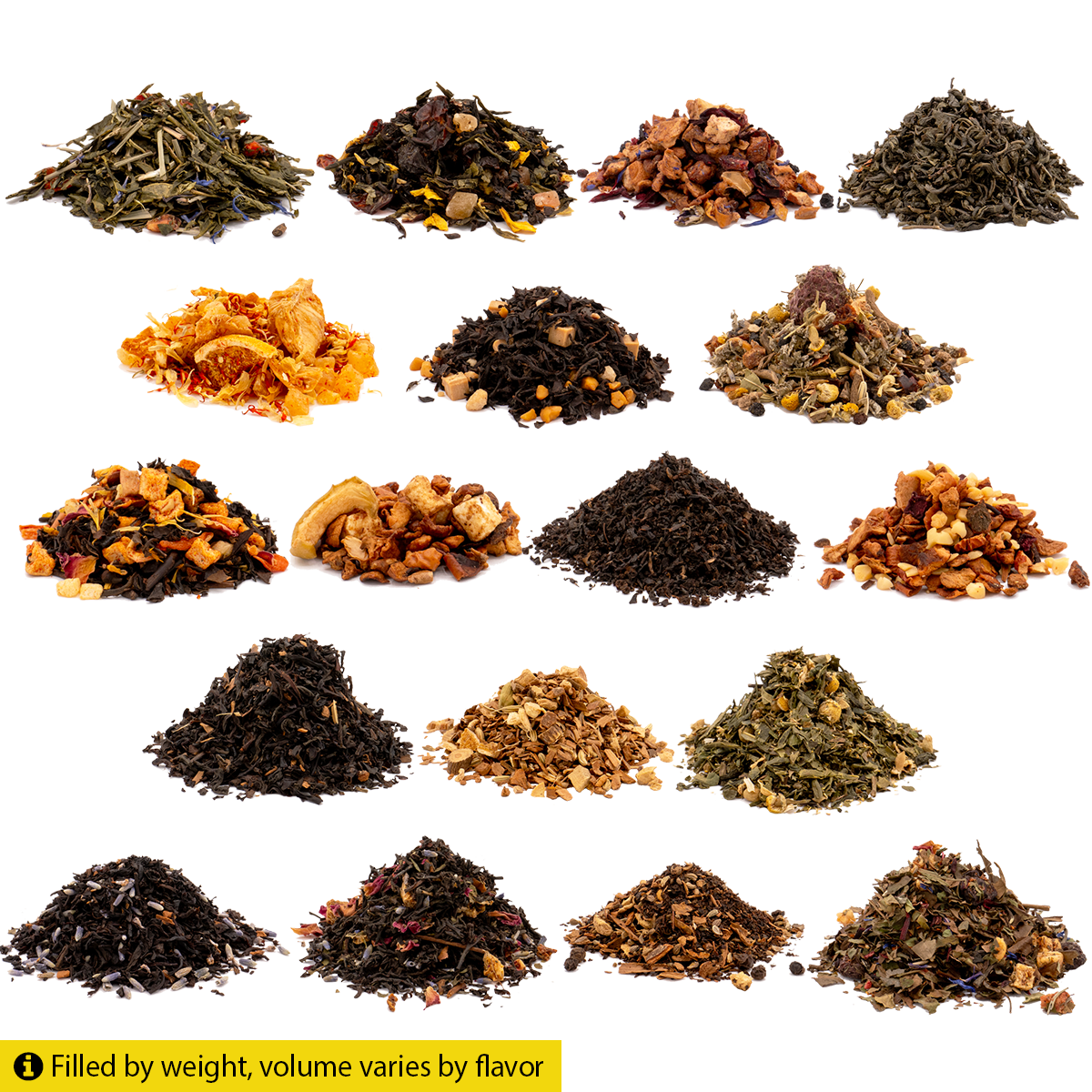 - Apple Seed - Full of apples, sweet sugar, and hearty nuts. Appleseed is the embodiment of what a fruit tea should taste like. Feast your eyes and your taste buds on the chunks and slices of real apples this tea delivers.