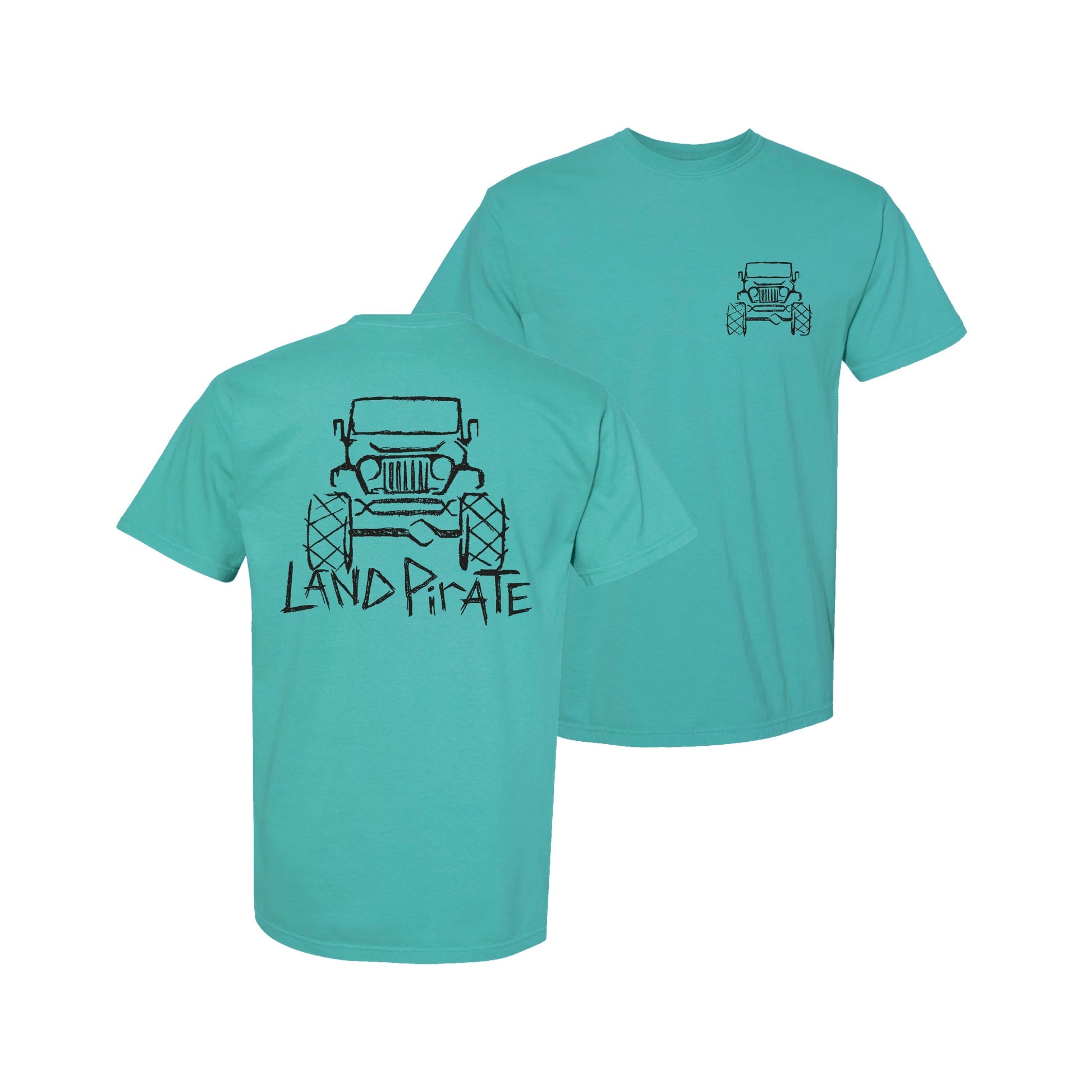 the essence of rugged exploration. Featuring the bold outline of an off-road vehicle and proudly displaying the Land Pirate name, this shirt is perfect for adventurers at heart. Embrace the spirit of the wild with every journey.