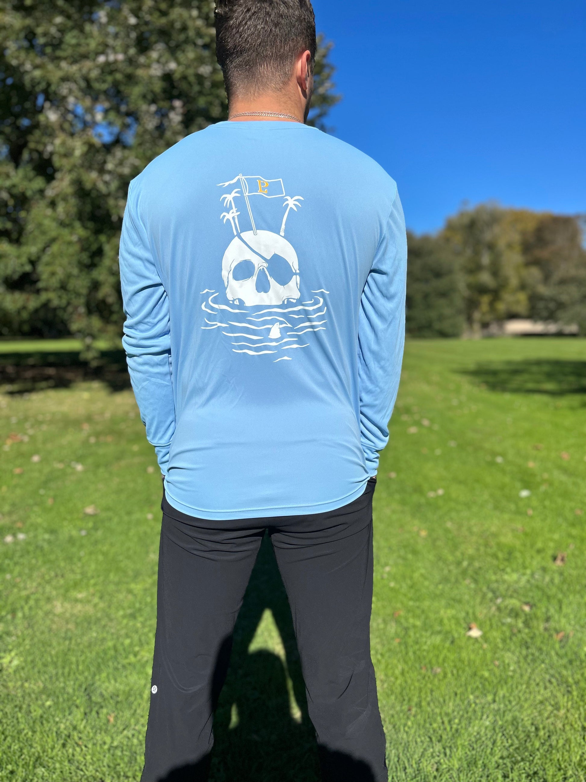 Grab a "Shady Castaway" Long Sleeve Sun Shirt from Land Pirate today and stay protected from the sun in style!