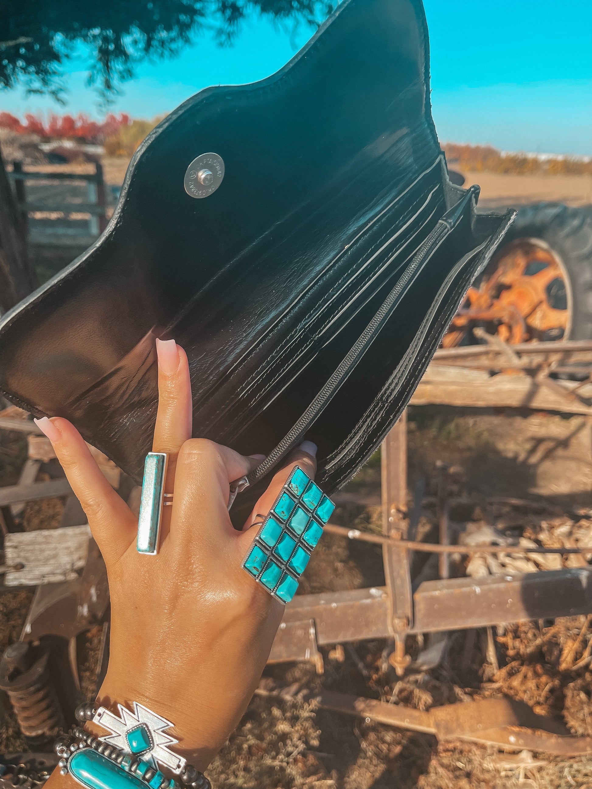 She’s tough, she’s country, she’s a whole dream! She Is the Smoking Gun Wallet. Available in a black or brown Hyde.
