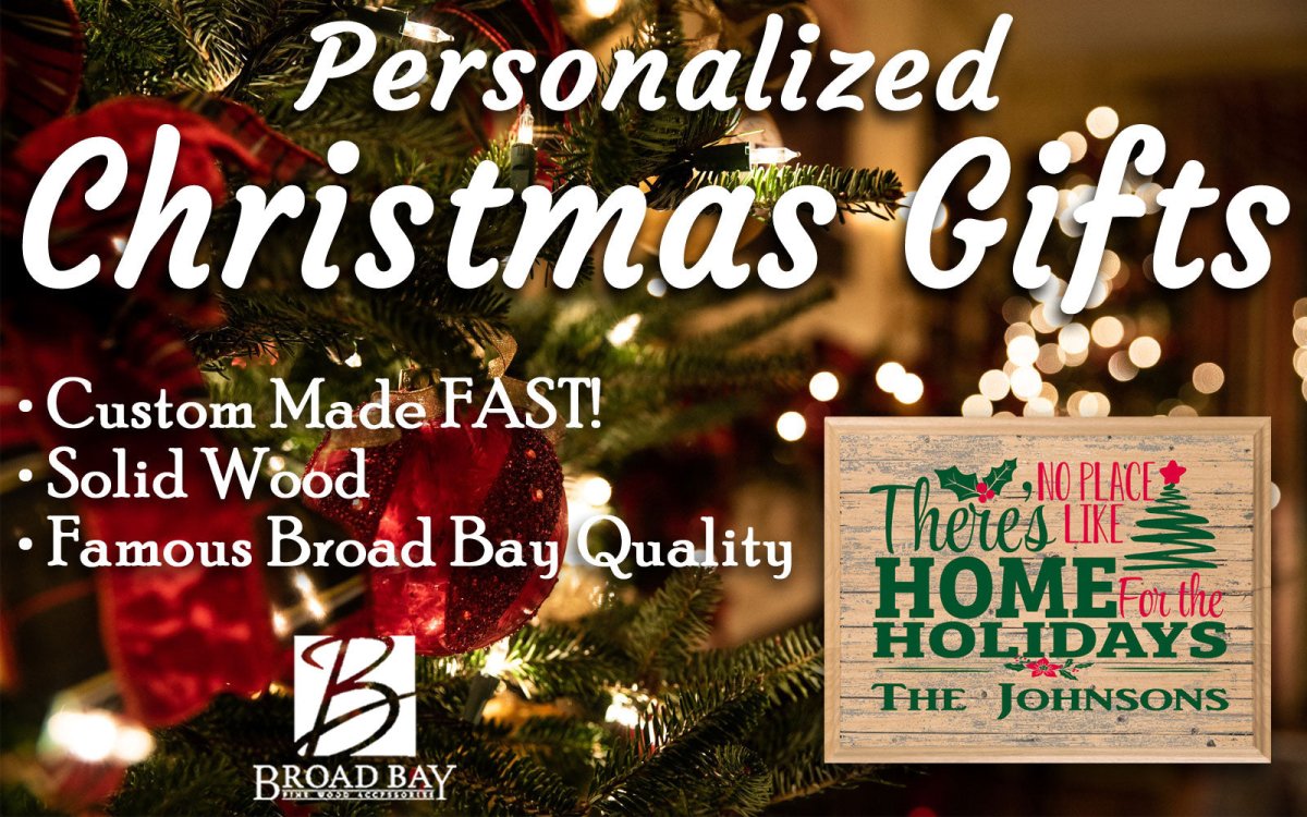 This Broad Bay personalized There's No Place Like Home For The Holidays Christmas family name sign is a top personalized Christmas gift. This wonderful There's No Place Like Home For The Holidays design vintage wall sign is carefully crafted in the United States from solid Maple hardwood. This unique custom-made Christmas family hanging wall art will be cherished for years to come and proudly displayed during each holiday season as a new family tradition. The vibrant, classic Christmas design is carefully applied to the solid maple wood in a unique process developed by Broad Bay to allow the beauty of the maple wood to show through the customized Christmas family name art print. Personalized with the family name, this vintage look Christmas gift is perfect in the kitchen, on the mantel, or hanging anywhere in the home.
