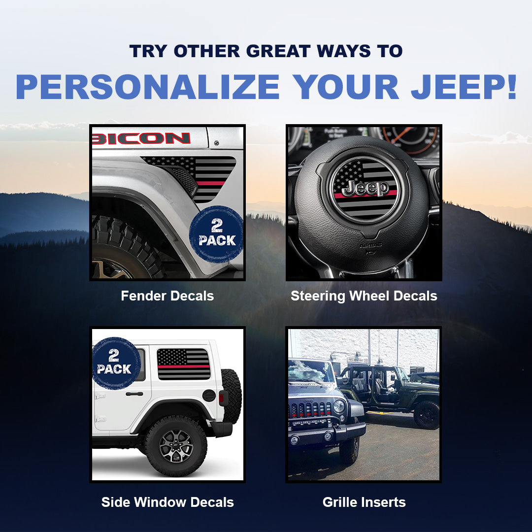 Thin Red Line Jeep Fender Emblem Overlay Vinyl Decals 2pk