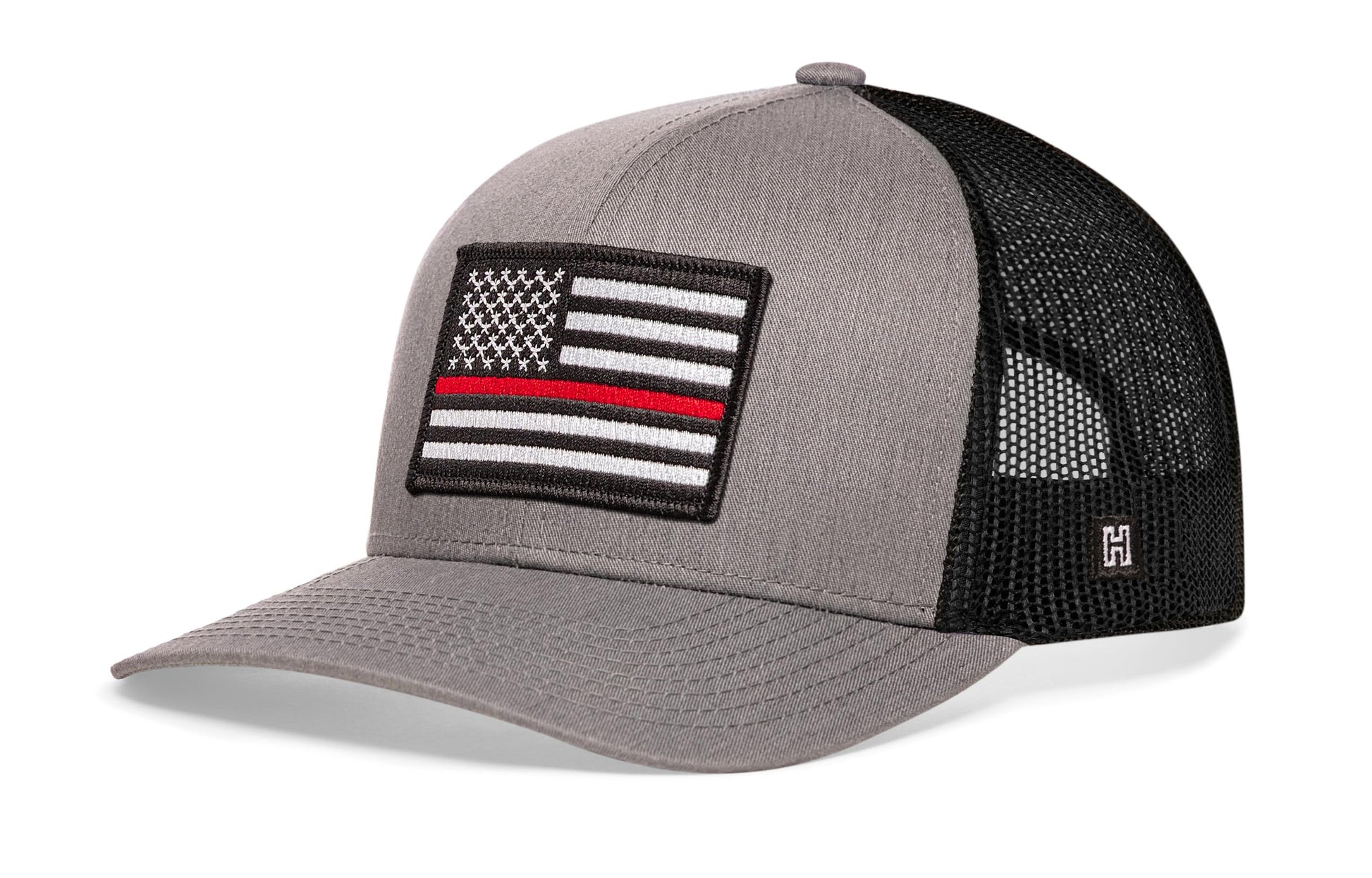 Support Firefighters in style with the HAKA Thin Red Line Trucker Hat, featuring a premium fire embroidered patch on our gray-black signature 5.0 trucker.