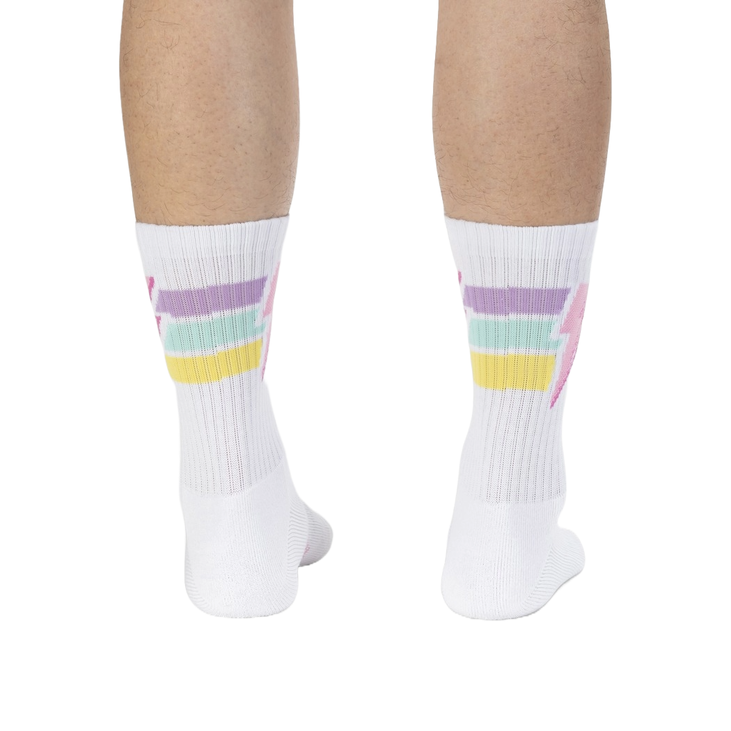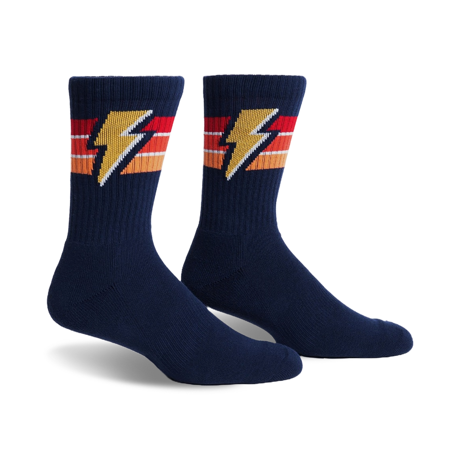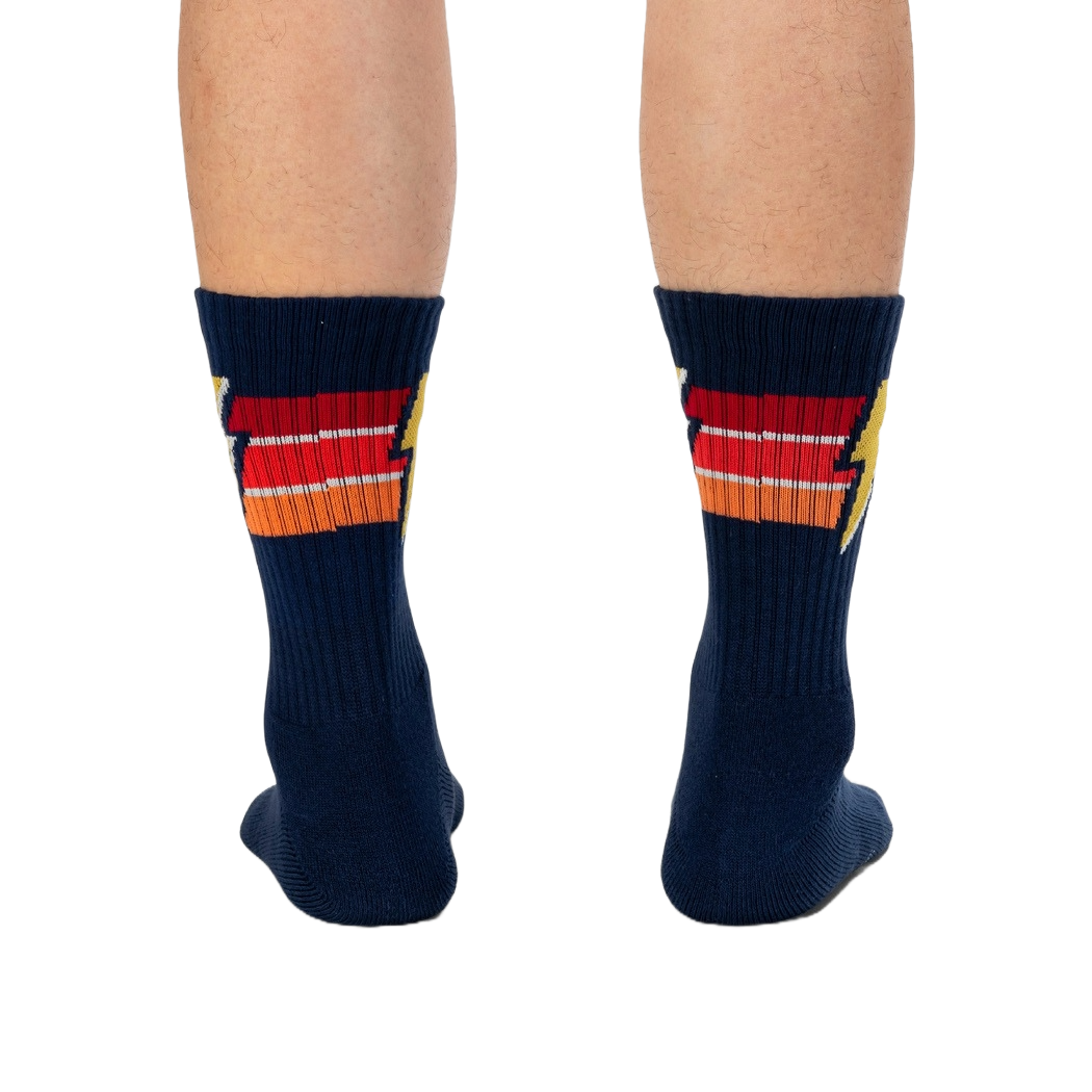 Blast off into the stratosphere with our electrifying 'Thunderstruck' socks! Picture this: a mesmerizing array of radiant yellow, fiery orange, and scorching red lightning bolts dancing across a deep blue canvas, just like a celestial symphony. The audacity of these socks is sure to leave jaws on the floor and ignite conversations like a bolt from the blue. Whether you're a cosmic adventurer seeking stellar style or just a lightning bolt enthusiast, these socks are your ticket to electric individuality.