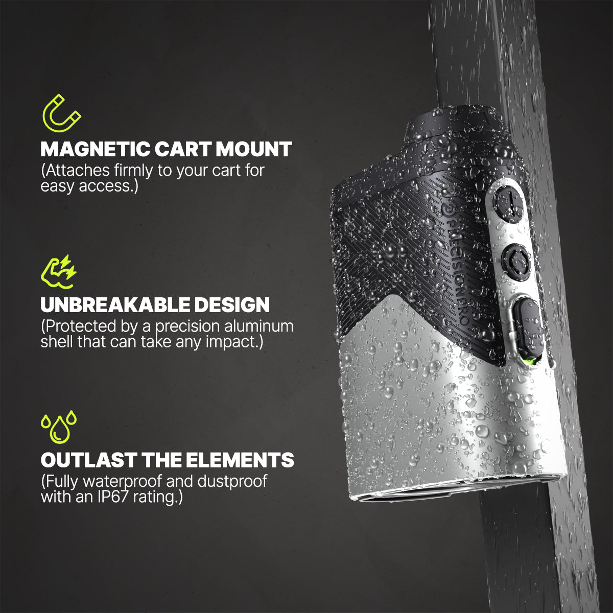 - Bluetooth Connectivity - Seamlessly pairs with the Precision Pro Golf app for enhanced features and real-time course data.