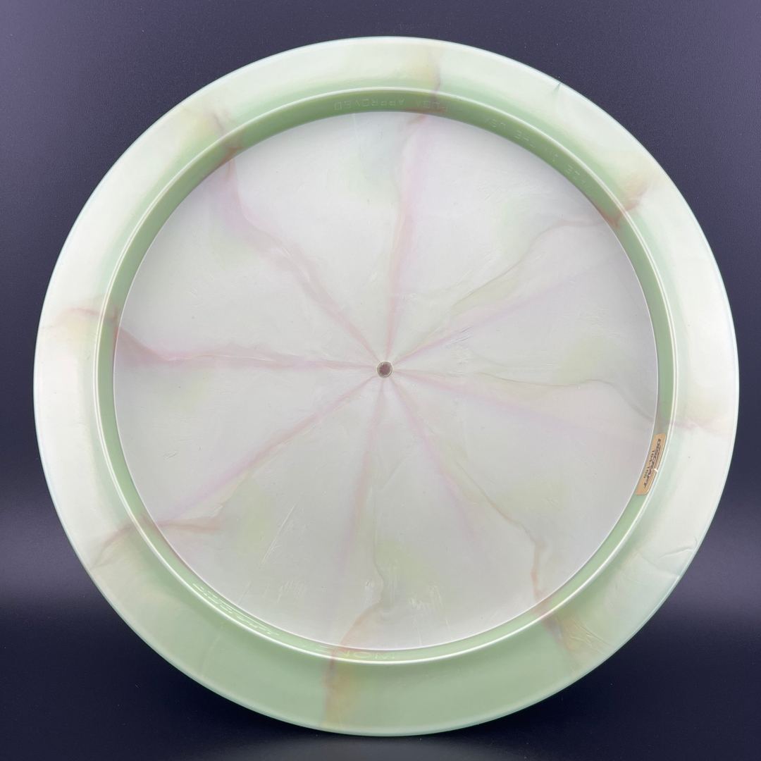 Introducing the Venom in our new Ti plastic blend, now featuring a tackier grip that delivers unmatched control and confidence on every throw. The Venom's fast and overstable flight path is complemented by the mesmerizing swirls in the plastic, ensuring each disc is a visual standout. Designed for power throwers and forehand specialists, the Ti Venom offers exceptional stability and a reliable finish. The enhanced grip ensures consistent performance, allowing you to harness the full potential of your throws with precision and power.
