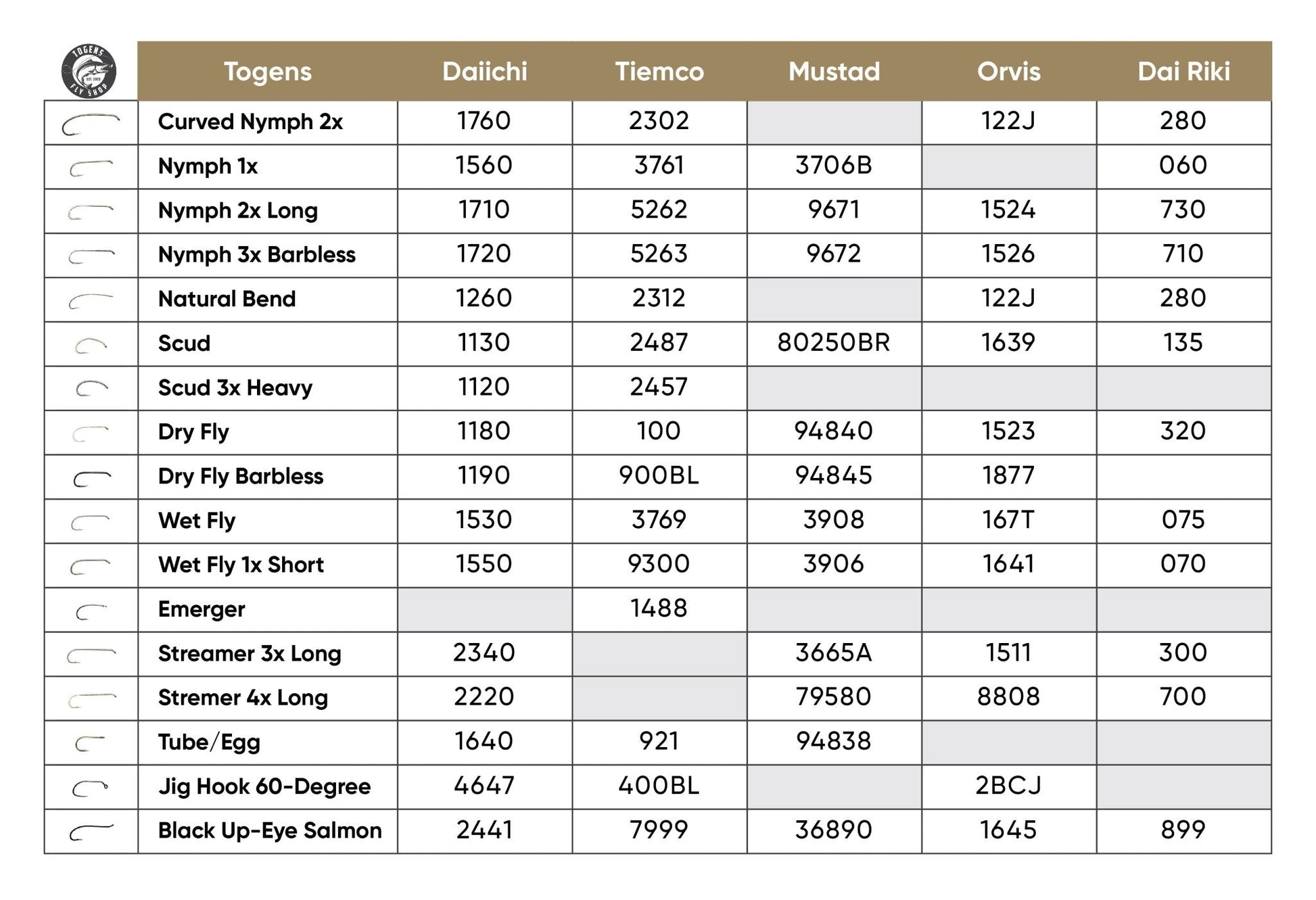 Togens hooks are made of premium high-carbon steel, hardened for strength and durability, providing a long point life and an extremely strong hook. Togens hooks use a constant taper. This provides a reliable shape, assuring no weak spots, and provides a shocking speed of penetration.