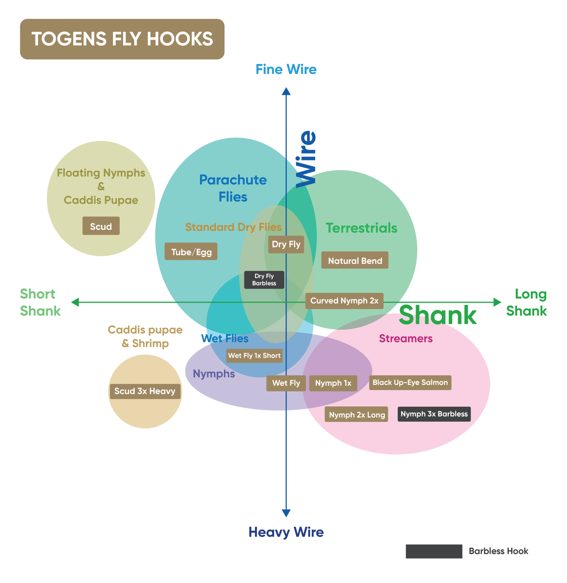 Togens hooks are made of premium high-carbon steel, hardened for strength and durability, providing a long point life and an extremely strong hook. Togens hooks use a constant taper. This provides a reliable shape, assuring no weak spots, and provides a shocking speed of penetration.