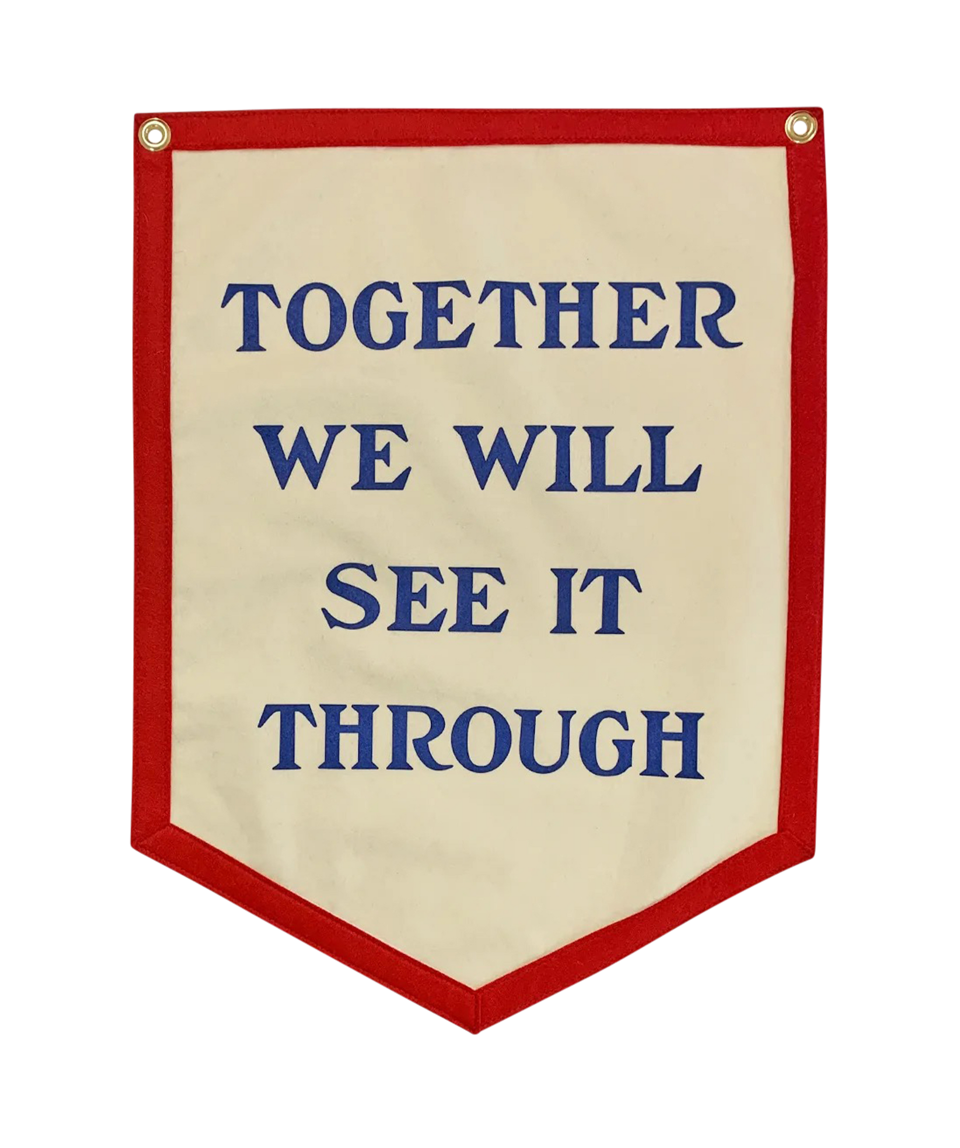 This camp flag, designed in March 2020, was inspired by a sign posted around Buffalo roughly 100 years ago—a period of time when the nation was recovering from both a World War and a pandemic. It reminds us of the value of sticking through the good times and the hard times with the people we love.