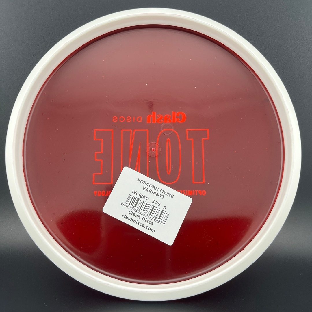 3/3/0/1 *First run of TONE Technology Popcorn's - Gummy flight plate with a stiff rim! Some with Shimmer and flakes. Beautiful disc and should be a huge new plastic type for Clash!