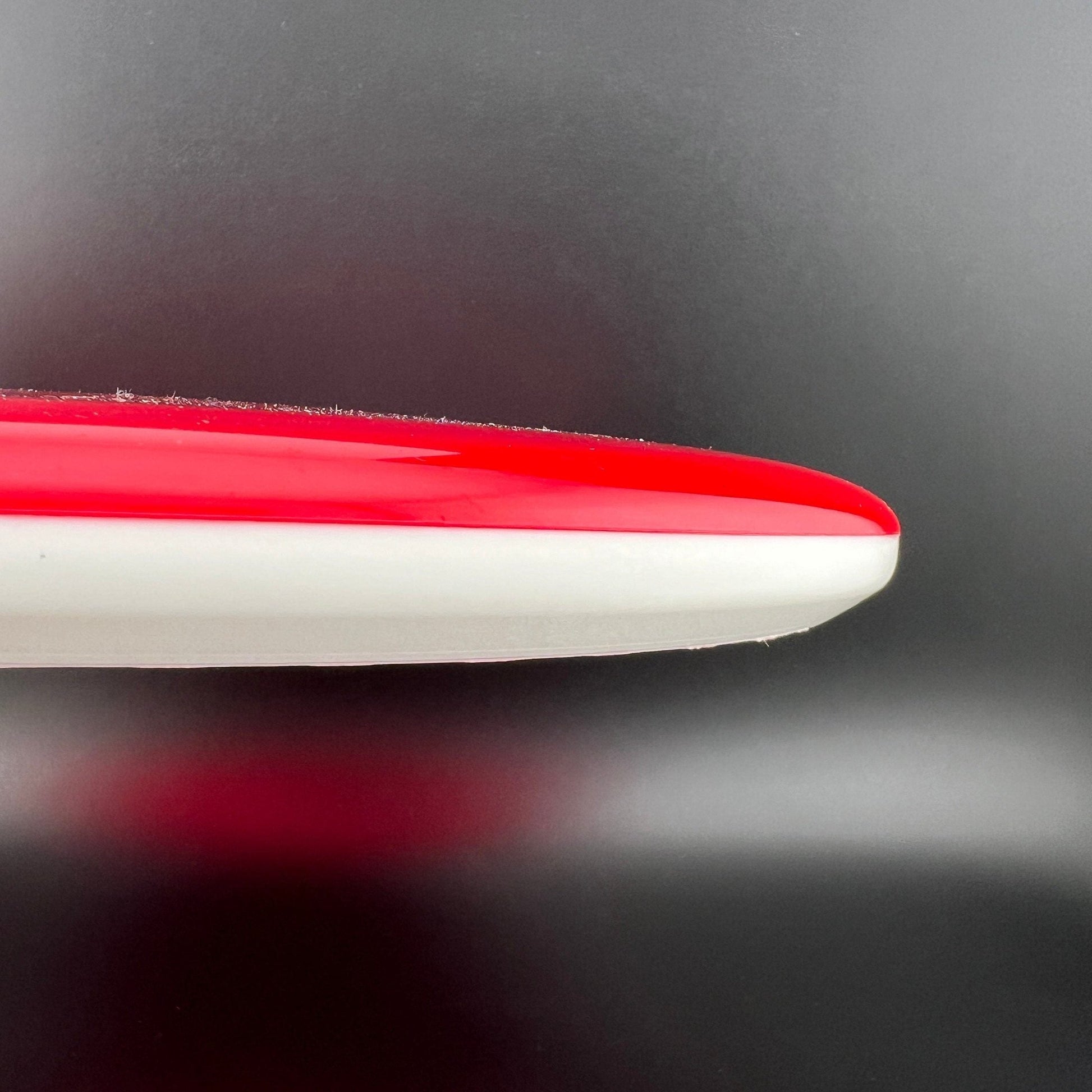 Clash Discs' Tone plastic features an innovative design that merges two distinct plastic types to optimize performance. The rim's bottom is crafted from a firmer plastic, offering high resistance to twisting forces, while the disc's top utilizes a blend of premium, tacky plastics for superior grip in any weather. This unique combination, known as TONE technology, not only presents a visually striking 3D effect but also enhances the disc's spin speed upon release. Together, these advancements significantly improve the disc's overall capabilities, ensuring top-tier performance across all throws.