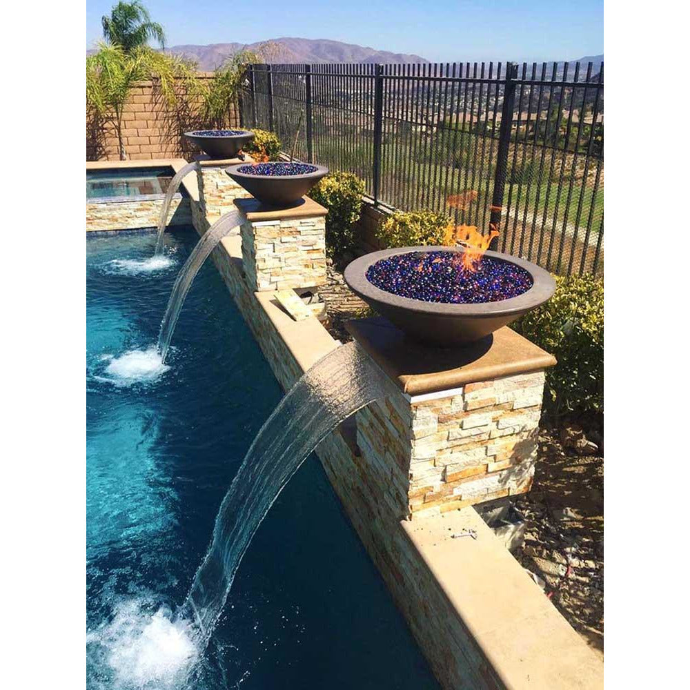 The Top Fires Cazo Fire Bowl has a curved body molded from Glass Fiber Reinforced Concrete (GFRC), a more durable type of concrete. Lining up several fire bowls will provide amazing lighting for your outdoor space. With a smooth finish that comes in 9 solid colors, 4 rustic finishes, and 5 metallic finishes, it will grace any space with style and elegance. Adorn it with optional fire glass, lava rocks, or ornaments to add to its beauty.