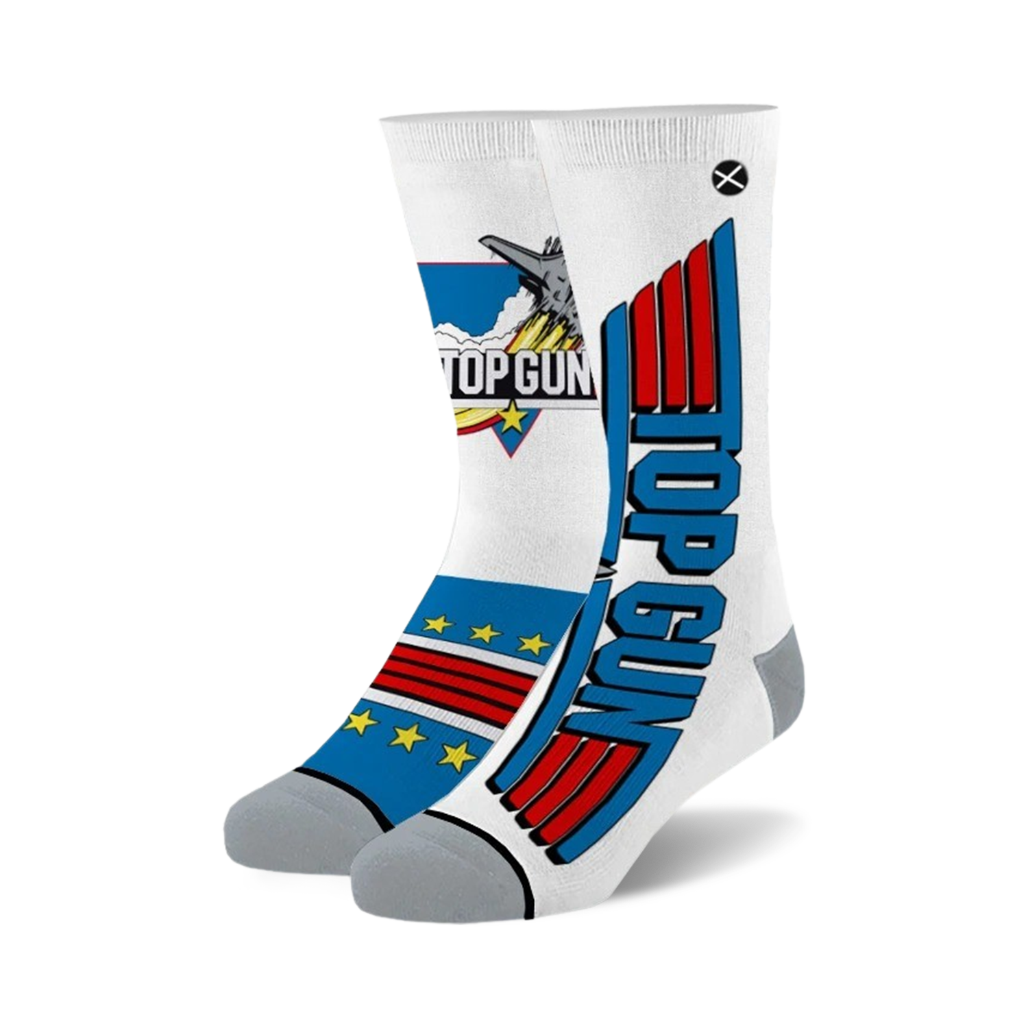 Feel the need for speed in our dashing Top Gun Pilot socks. Featuring supersonic fighter jets soaring through the clouds on a crisp white background, these socks are perfect for fans of the classic film or anyone who loves to fly high. With a comfortable crew length and a gray toe and heel, these socks will keep your feet feeling as good as they look. So, buckle up and prepare for takeoff with these patriotic Top Gun socks!