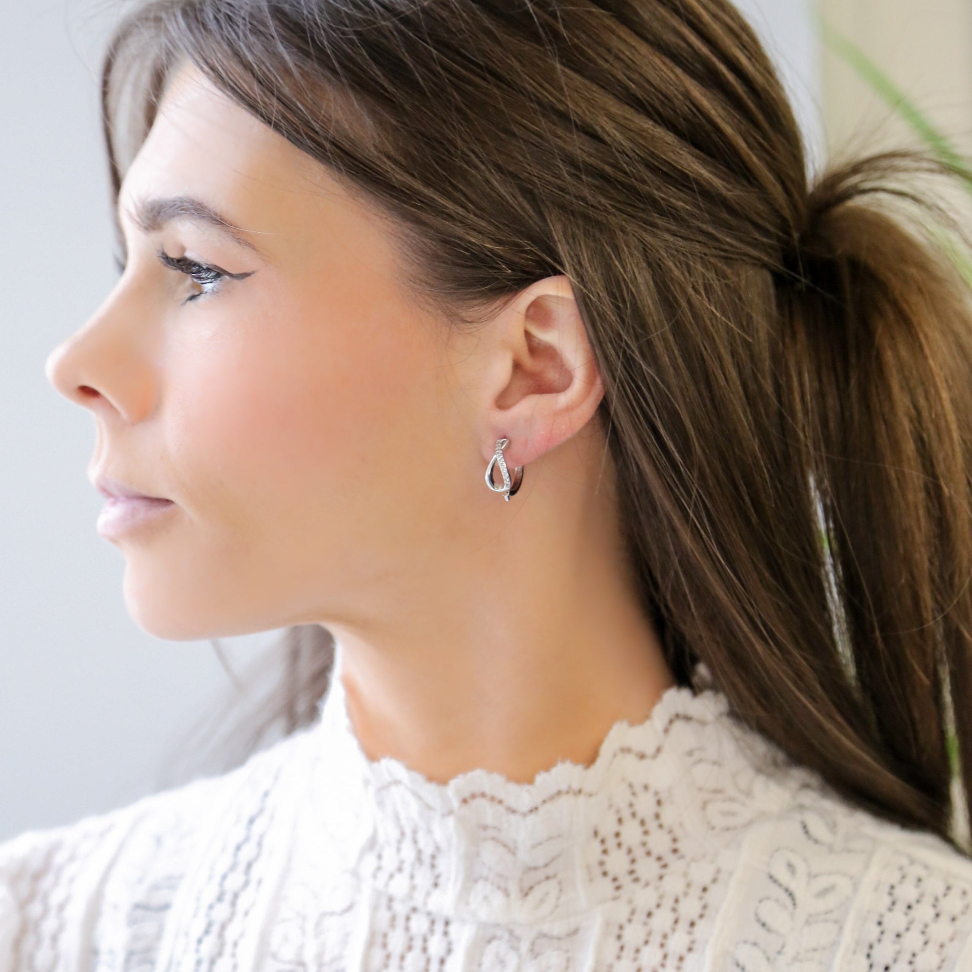 TOPSY TURVY - Sterling Silver and Zirconia Hoop Earrings