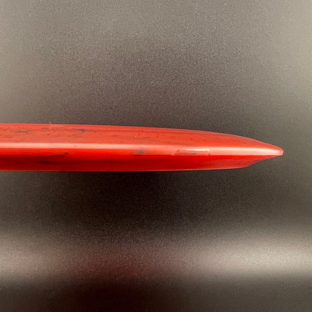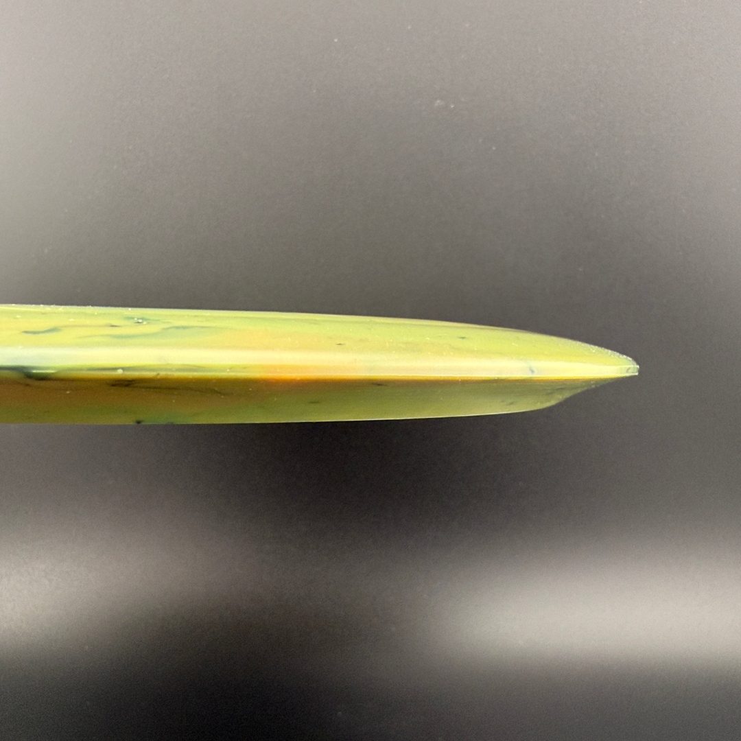 Toxic Waste plastic is a blend used in the Catastrophic Line by Doomsday Discs. It is a durable plastic with nice flexibility and grip. It can vary from being semi-transparent to completely opaque and is characterized by toxic splotches of black and other colors mixed into the blend.
