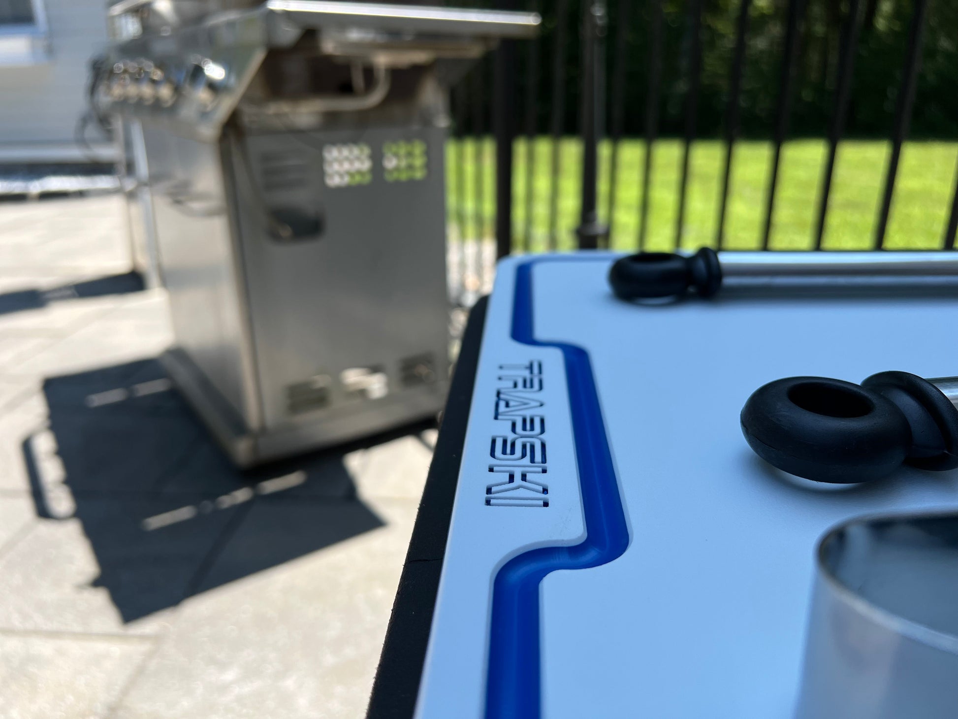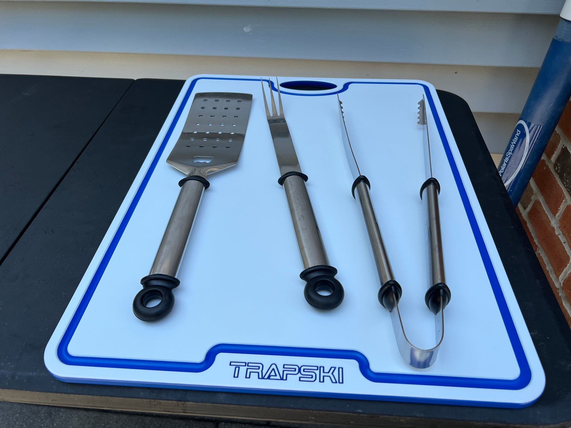 Upgrade your kitchen prep with the TRAPSKI HDPE Cutting Board – built for serious cooks who demand durability, safety, and easy maintenance. Made from high-density polyethylene, our cutting board is knife-friendly, stain-resistant, and fully dishwasher safe. The non-porous surface prevents bacteria buildup while the built-in juice grooves help keep your counters clean. Available in professional Natural white and white blue accented trim, it's the perfect fit for your home kitchen, outdoor prep area, or commercial kitchen, boat, RV, camping or cabin get-away.