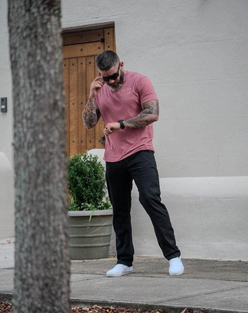Engineered for agility, these Trek Pants fuse lightweight cotton/spandex stretch fabric with a durable water-repellent finish. With eight pockets—two secured by zippers—you'll have space for all your essentials. The black tones down naturally after a couple of washes, perfecting the look. Featuring built-in drawstrings and a relaxed athletic cut, these pants deliver maximum comfort without sacrificing edge.