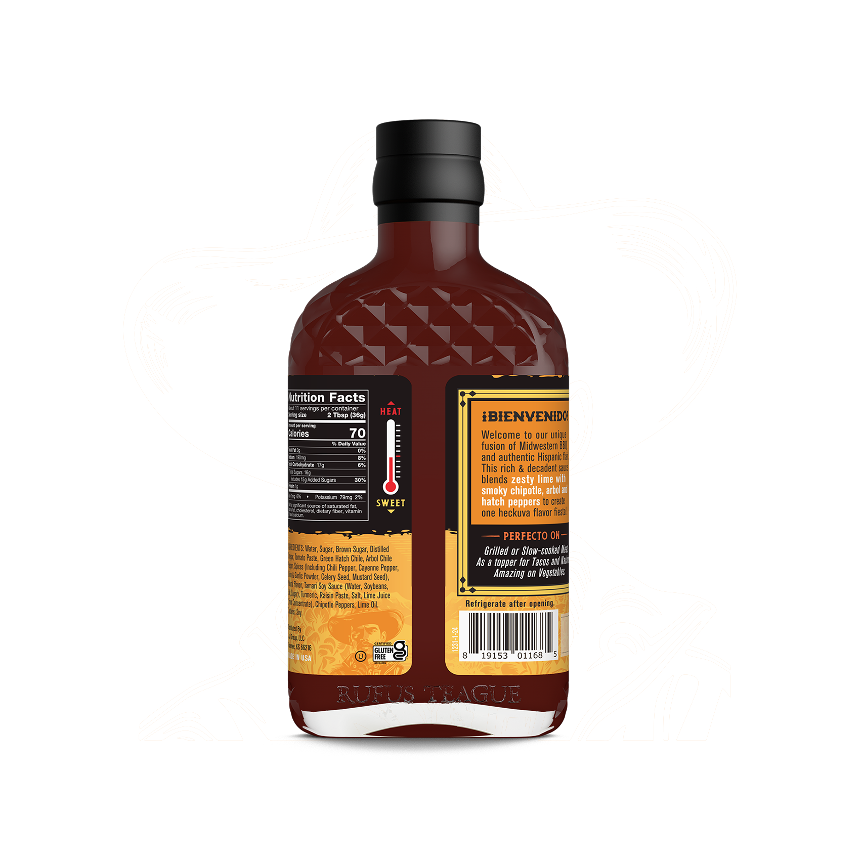 This is a whole new idea on how BBQ sauce can be reimagined through the lens of genuine Latino flavors. We wanted something that mixed authentically deep, smoky and bitter chili pepper flavors with the sweetness that Midwest BBQ sauces are known for. And that's just what we made.
