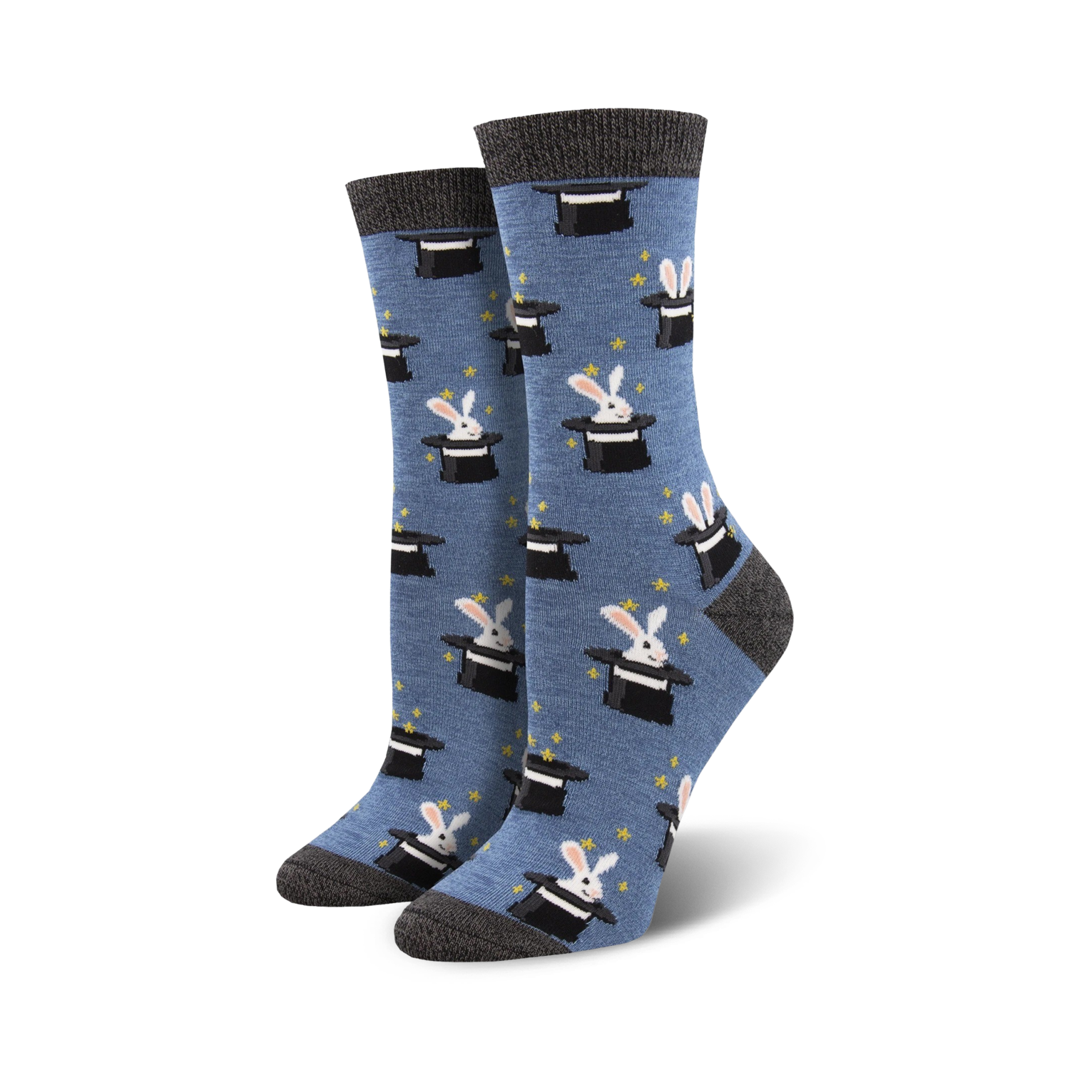 Introducing Tricky Rabbit Bamboo socks: a delightful and mysterious choice for those who embrace their playful side. When you see the image of the rabbit peeking out of a top hat, you'll probably be reminded of the classic magic trick. These socks will weave some magic into your wardrobe.