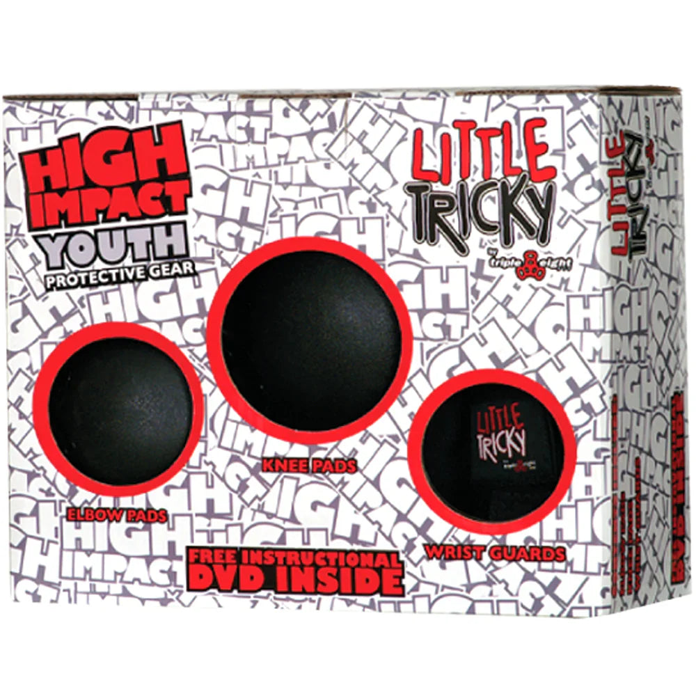 Get your kid padded up ready to skate with our convenient Little Tricky 3-pack. It comes with wrist guards, knee pads, elbow pads and a free instructional safety DVD featuring Mitchie Brusco himself.