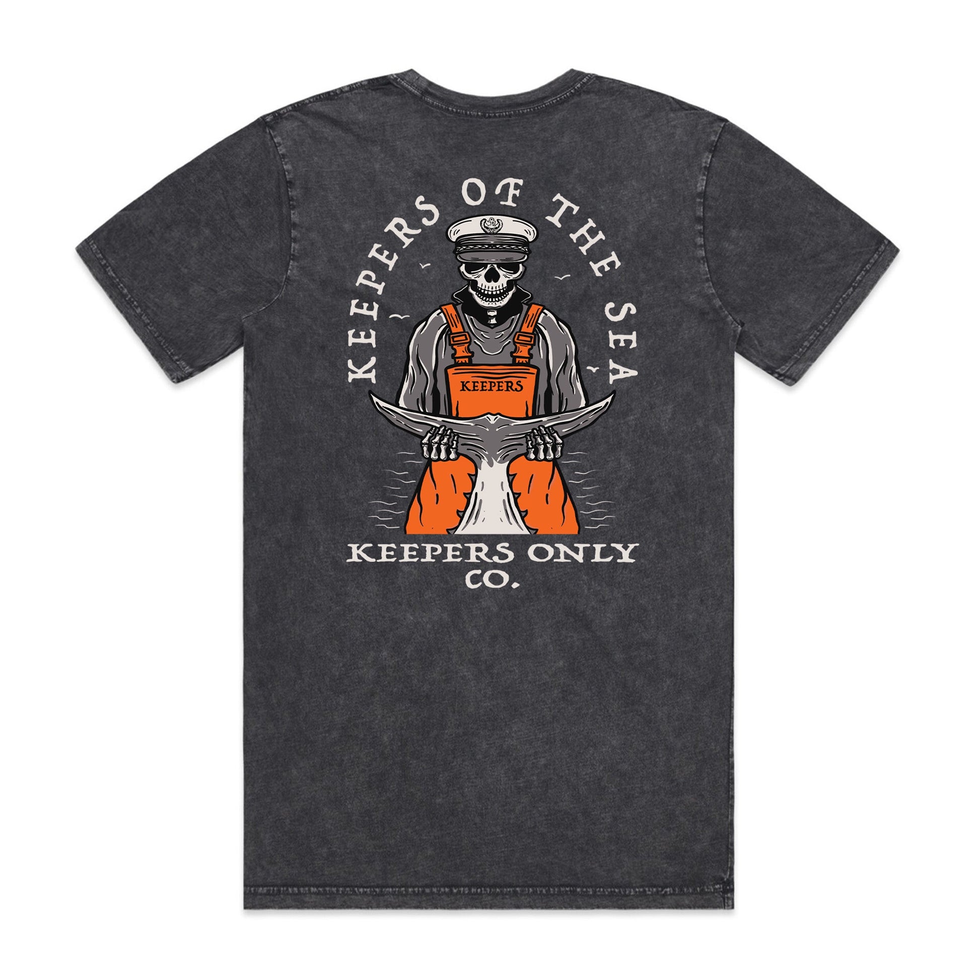 The Tuna Slayer Washed Tee achieves its authentic look and feel through special dye and mineral wash processes, which create unique and natural variances in texture, distress, and shade. These are intentional and not considered defects.