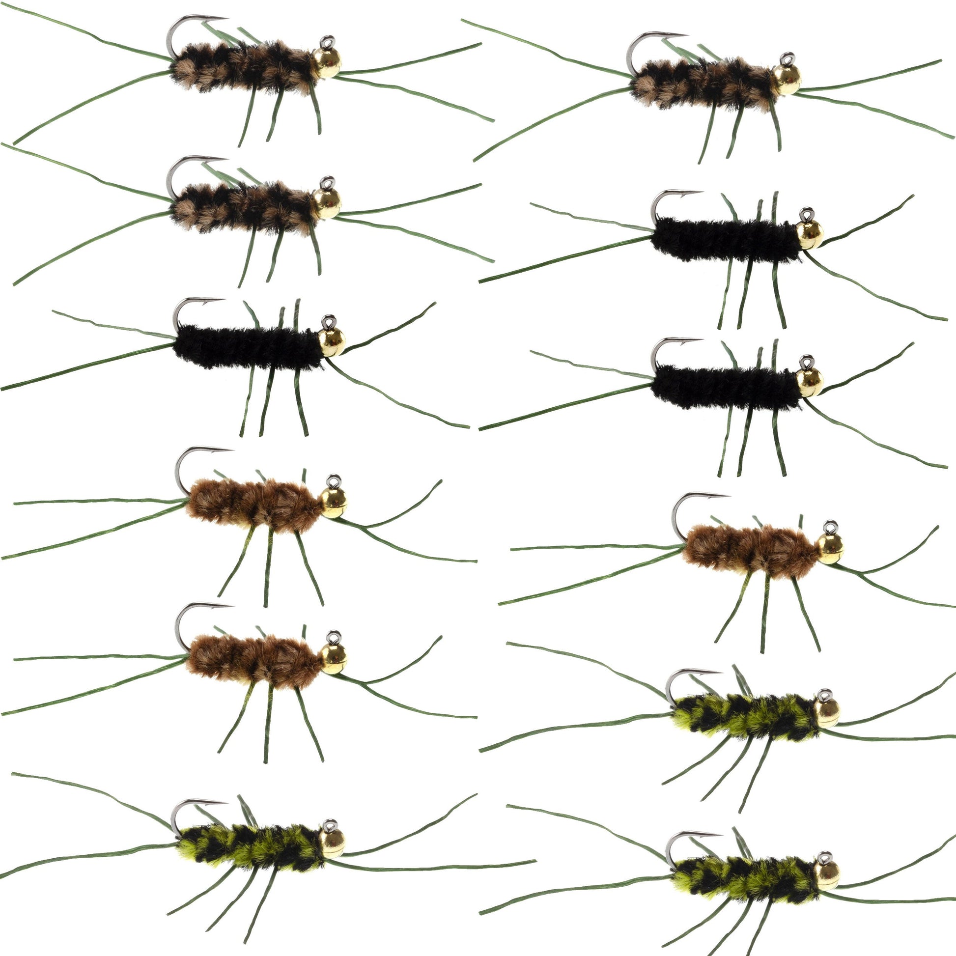 Tungsten Bead Jigged Pat's Rubber Legs Nymph Assortment Euro Fly Fishing Flies - Trout and Bass Wet Fly Pattern - 12 Flies Hook Size 10