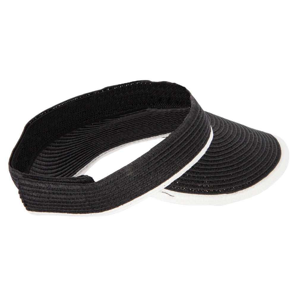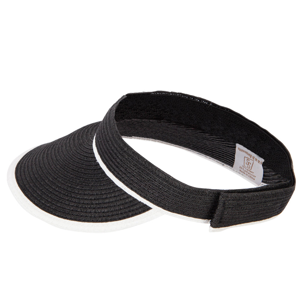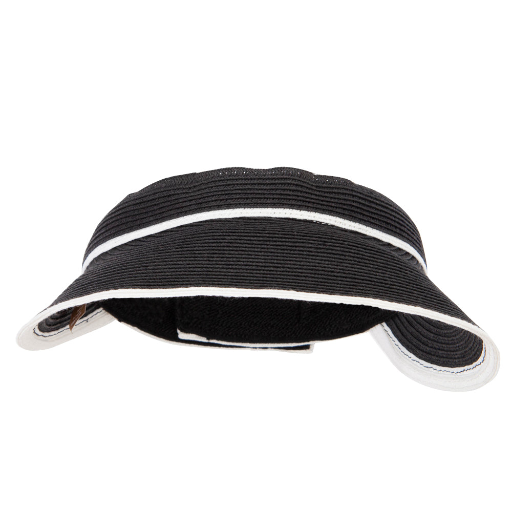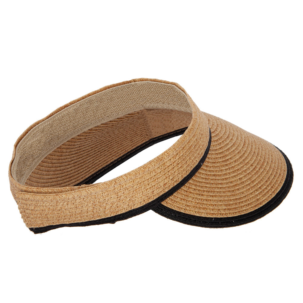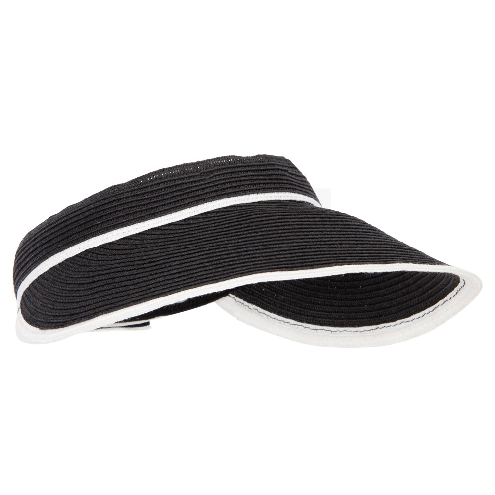 Two Tone Wide Brim Straw Visor with Contrasting Color Edge